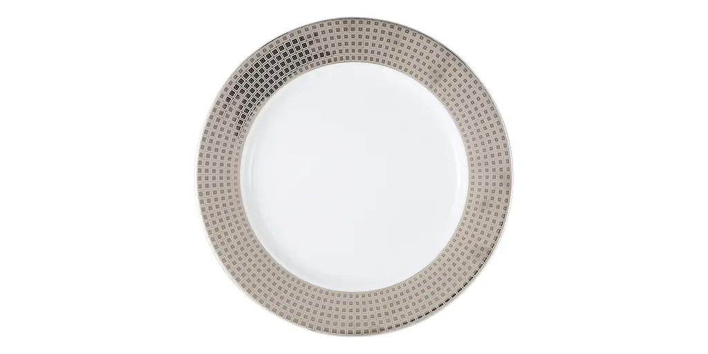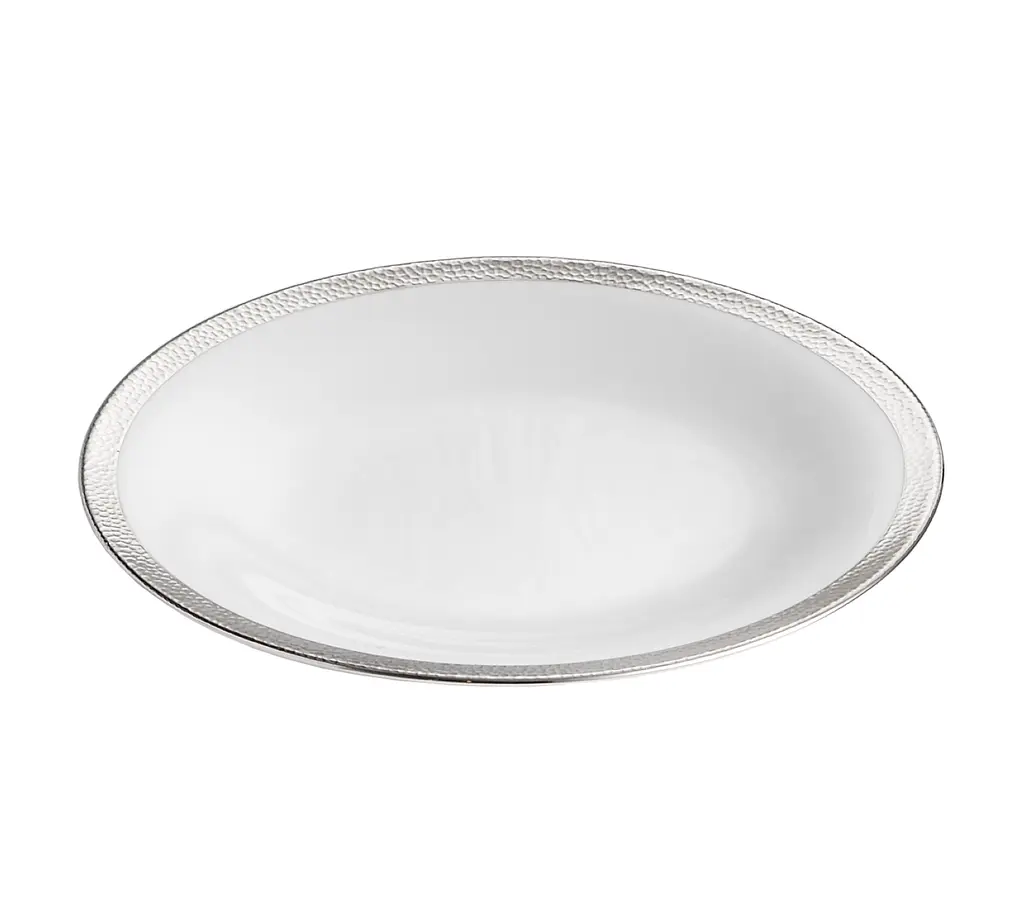 A thick band of sparkling platinum edges each high-quality Limoges porcelain piece in Michael Aram's Silversmith dinnerware collection. It's designed to pair perfectly with a range of settings, from casual to formal.