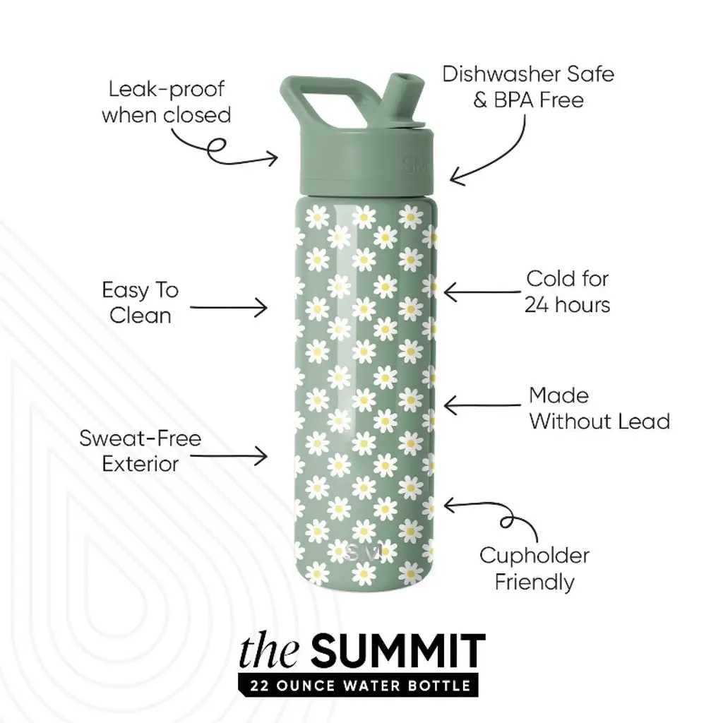 Simple Modern 22oz Summit Daisy Water Bottle Sage Green