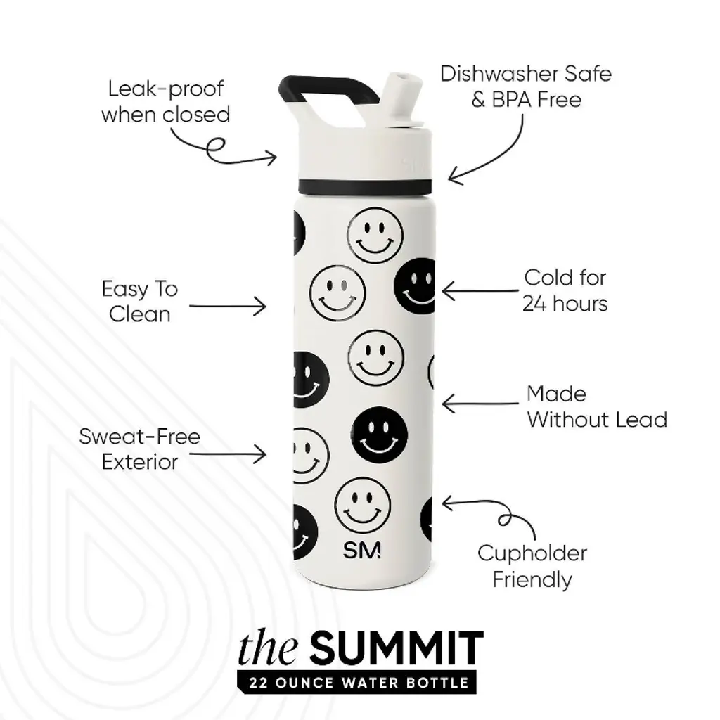Simple Modern 22oz Summit Happy Face Water Bottle Cream/black