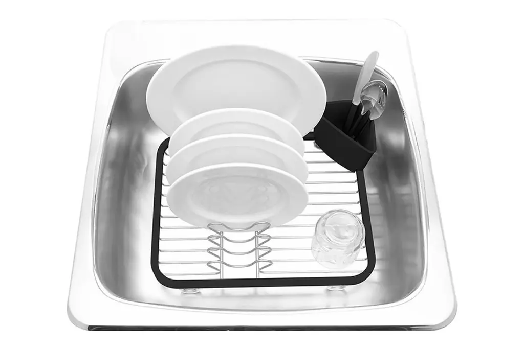 Searching for a stylish, practical dish rack? Look no further than the Sinkin Dish Rack from Umbra, an ultra-contemporary dish rack that is built to last. Created by exceptional designer Helen T. Miller, the dish rack features a look and feel all its own. Also, this distinct dish rack includes a deluxe coating that protects the piece against scratching. Deploy a dish rack that will perform flawlessly day after day -- the Sinkin Dish Rack.