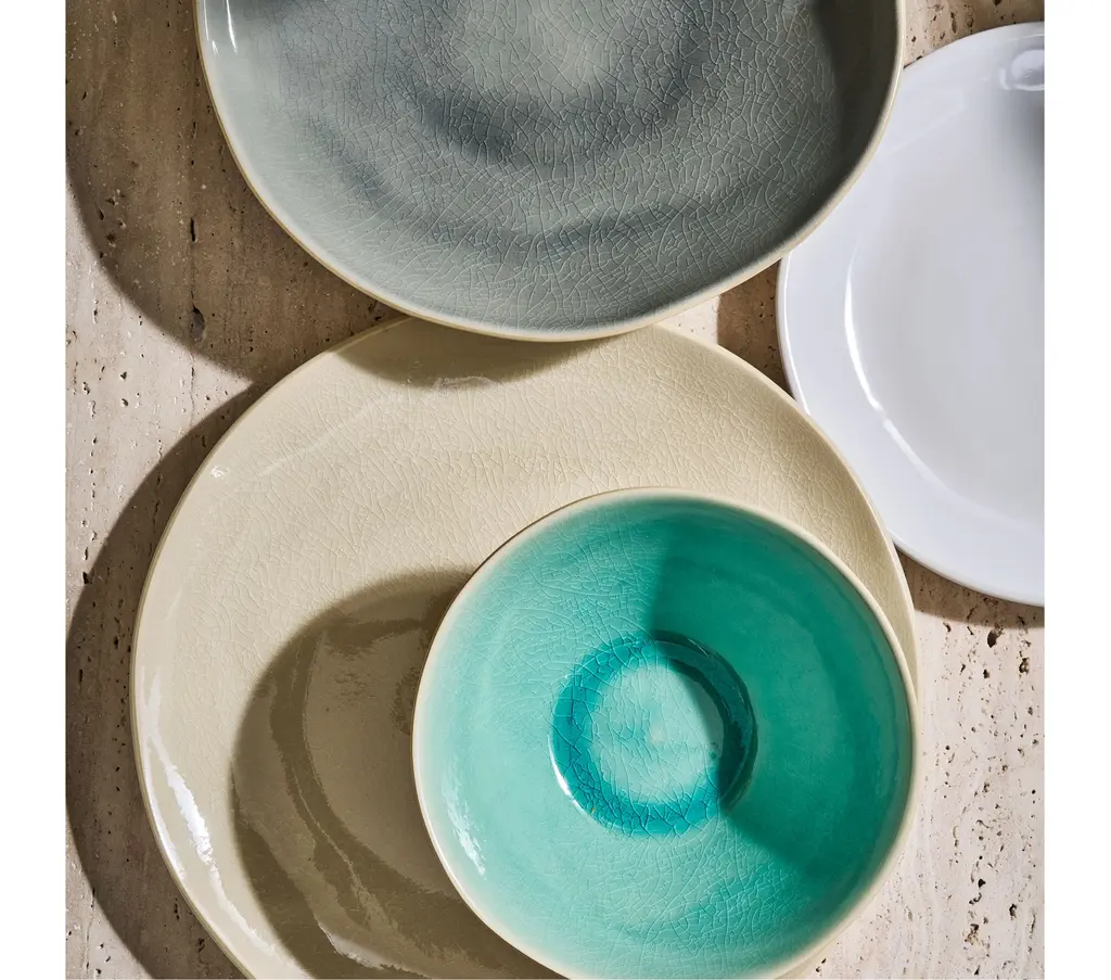 With refined organic shapes and natural hues, the Sintra dinnerware collection reflects the one-of-a-kind feel of handmade stoneware. Each piece is designed and crafted in Portugal using local clays and finished with a reactive or crackle glaze bringing personality and warmth to your table. In four complementing colorways, the collection mixes-and-matches and layers beautifully together for gathering and celebrating.