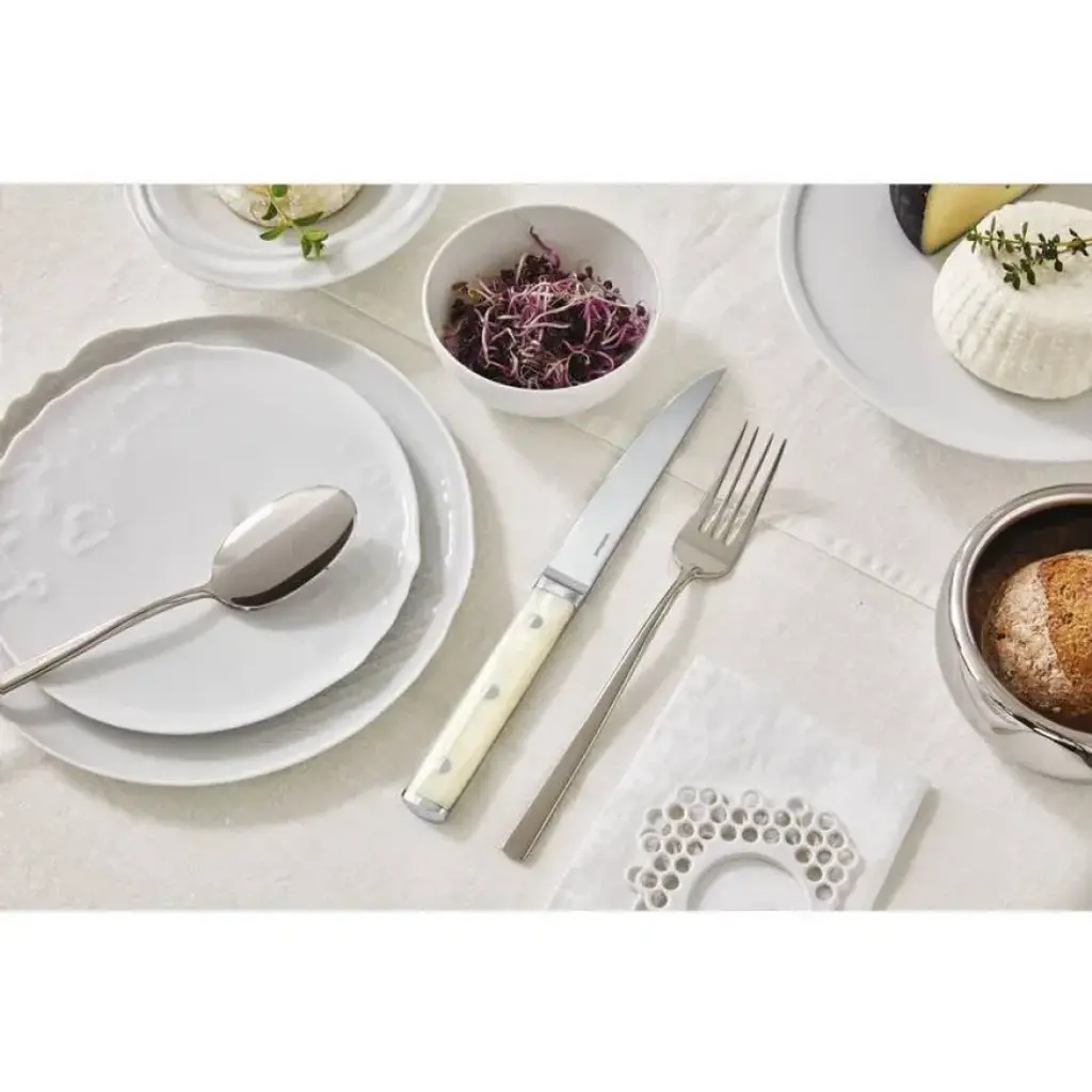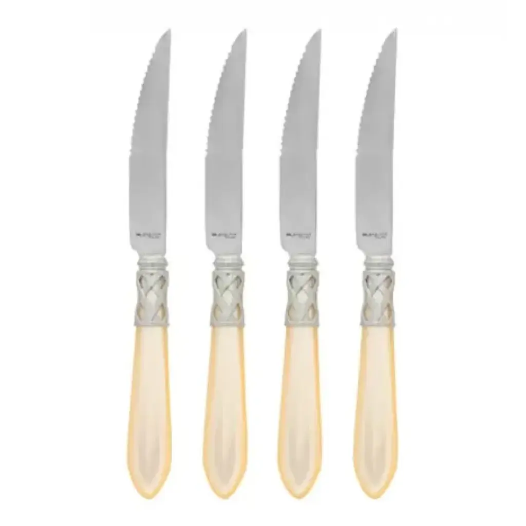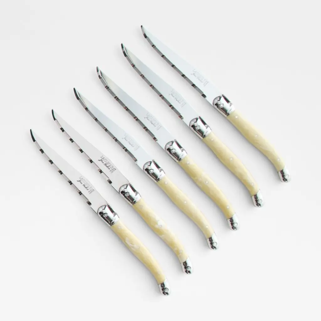 Sirloin Steak Knife Set, 2 Pcs, Smooth Blade, Gift Boxed 9 1/2 In 18/10 Stainless Steel Blade, Ivory-Effect Resin Handle