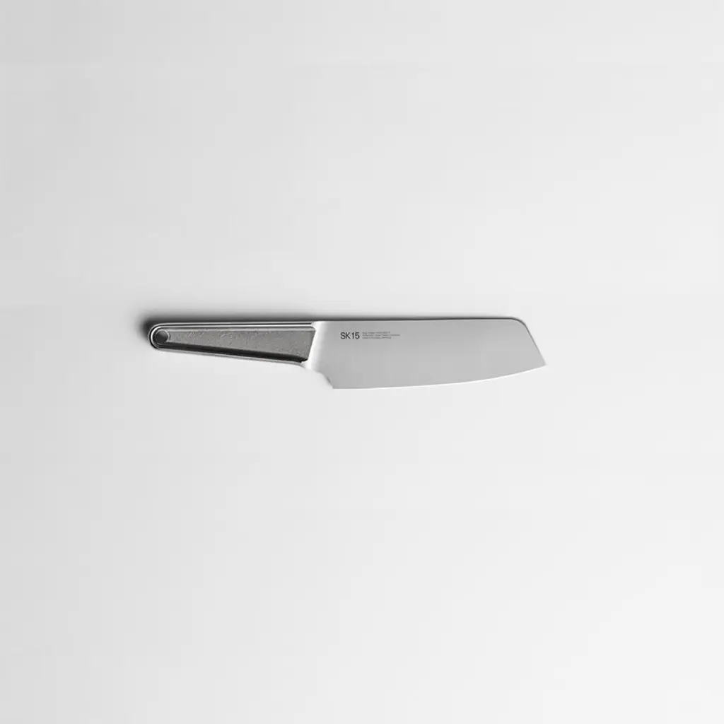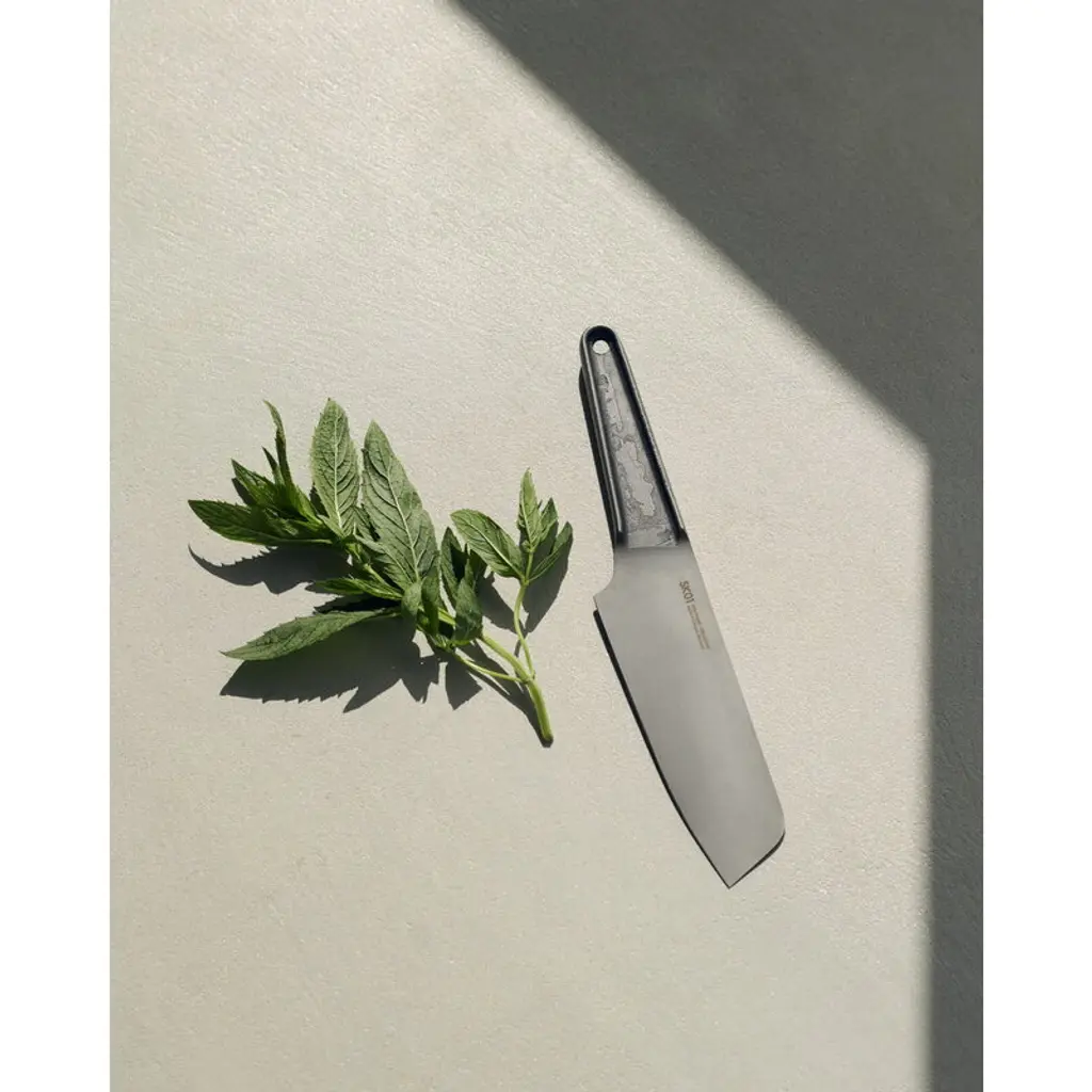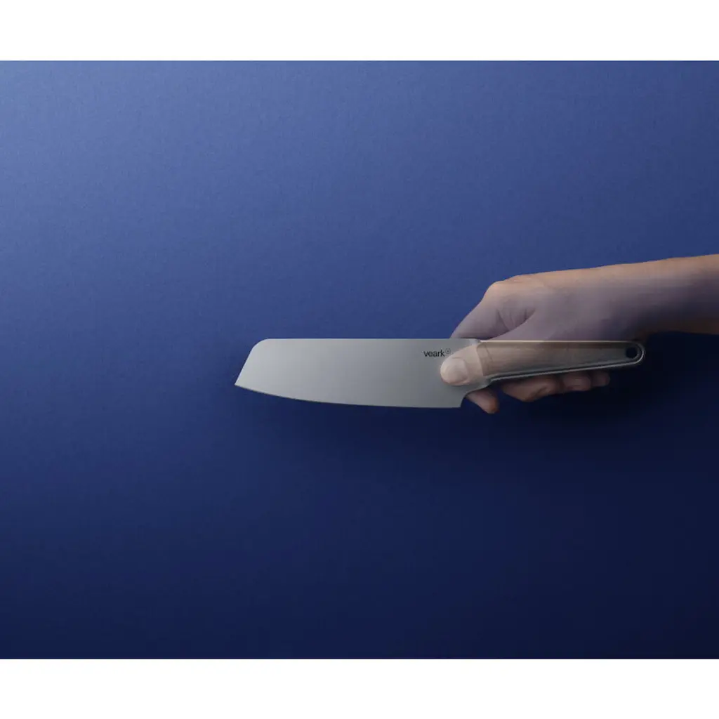 The Veark SK15 is a Japanese-inspired Santoku knife that offers excellent control when slicing vegetables, fish and meat. The broad blade also makes it easy to scoop up and transfer ingredients from the cutting board with ease. Crafted from high-quality German steel, the SK15 knife is forged from a single piece of metal, making it seamless, easy to clean and exceptionally durable. The handle’s open design, inspired by a wrench, allows for a secure grip close to the blade’s center of gravity, improving precision and balance. The surface of the handle features a unique texture created by drop forging, giving each knife its own distinctive character. Built to last for generations, Veark knives are made in Solingen, Germany – a town renowned for its centuries-old knife-making tradition.