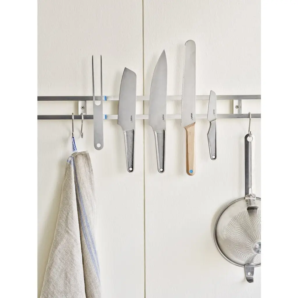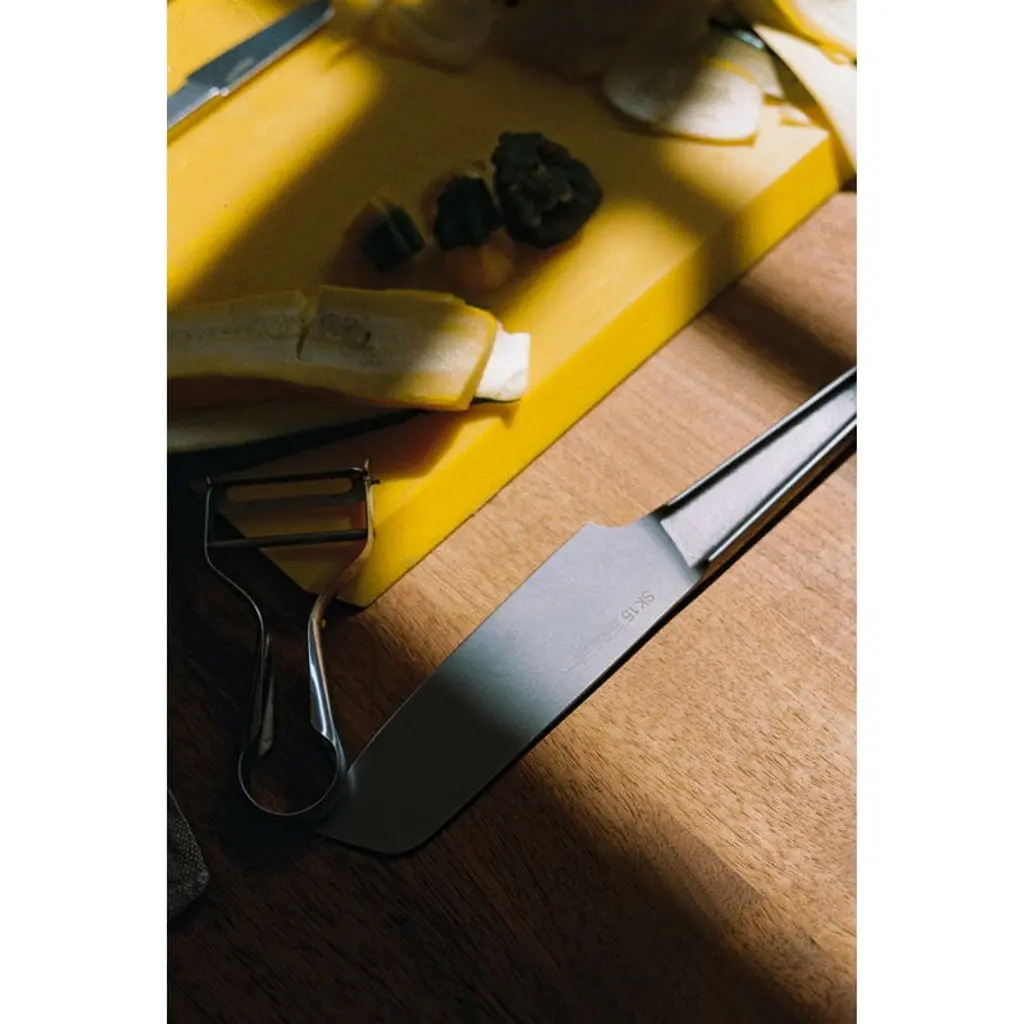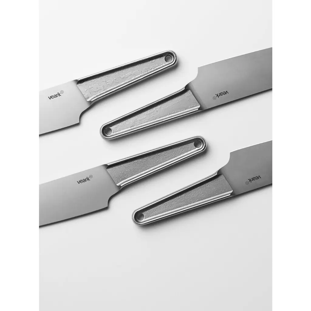 The Veark SK15 is a Japanese-inspired Santoku knife that offers excellent control when slicing vegetables, fish and meat. The broad blade also makes it easy to scoop up and transfer ingredients from the cutting board with ease. Crafted from high-quality German steel, the SK15 knife is forged from a single piece of metal, making it seamless, easy to clean and exceptionally durable. The handle’s open design, inspired by a wrench, allows for a secure grip close to the blade’s center of gravity, improving precision and balance. The surface of the handle features a unique texture created by drop forging, giving each knife its own distinctive character. Built to last for generations, Veark knives are made in Solingen, Germany – a town renowned for its centuries-old knife-making tradition.