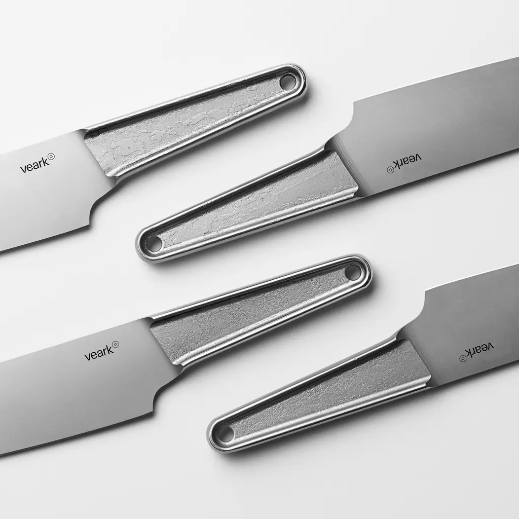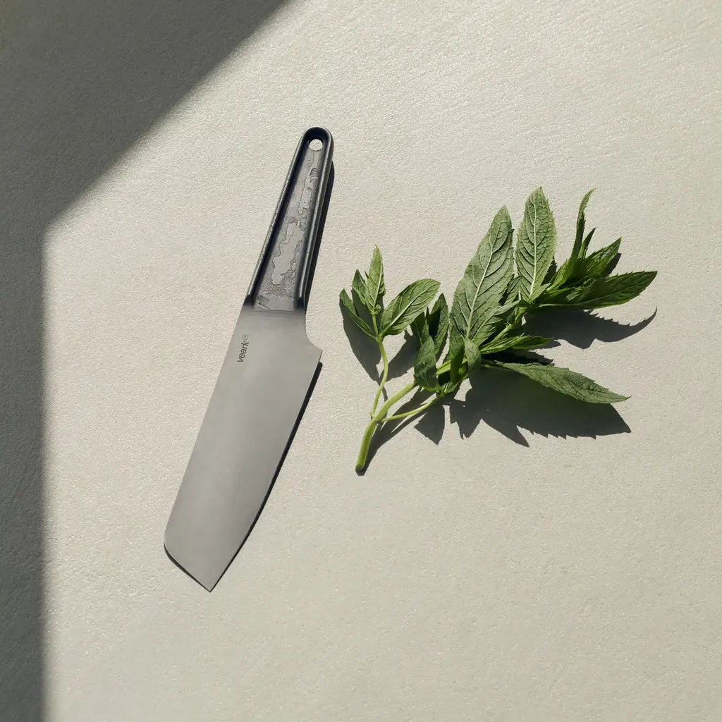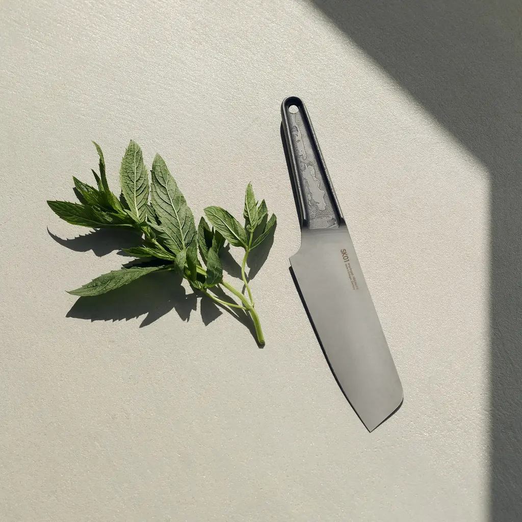 Discover the satisfying way of dicing, slicing, and mincing ingredients with the Veark SK15 Forged Santoku Knife. Ultra-sharp and made with an ergonomic open handle, this knife is a delight to use, day after day. Each knife is skillfully crafted with the drop-forging technique in Solingen, Germany. The handle features distinctive and unique textures as well as an open design that enhances grip and stability. Sharpened by hand, the blade has a hardness of 58 compared to the hardness of 55-56 Rockwell of a standard Solingen knife. This means that the SK15 Forged Santoku knife cuts with perfect precision and stays sharper for longer.