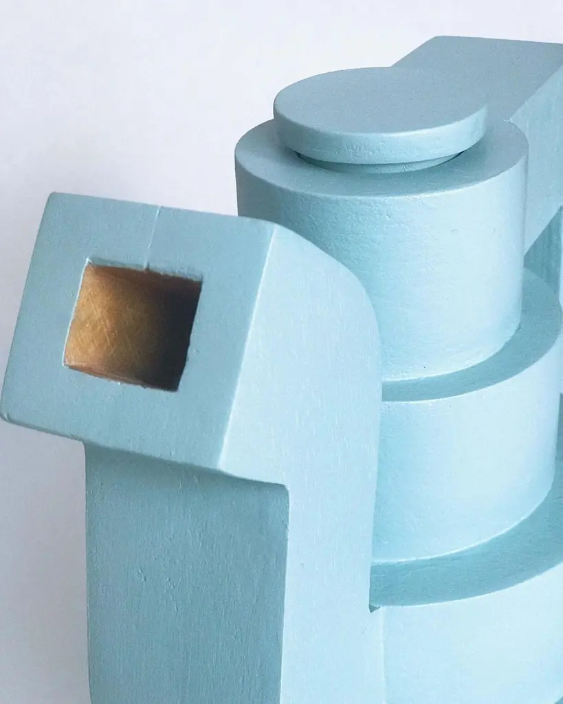 Skyblue Plakkenpot H coffee pot by Hanna KooistraLimited Edition of 100Dimensions: 16.5 x 25 x 25.5 cm.Materials: abachi wood, food-safe and heat-resistant coating, acrylic paintAvailable in other colors.These coffee pots are a reinterpretation of a coffee pot from the Rijksmuseum. The view of this pre-industrial object transform trough a dynamic design process of stacking, cutting, stitching, flattening and folding existing images and shapes. With these simple methods I transform the existing shape to let it develop further.Hanna Kooistra - DesignerAs a designer I am constantly studying, copying and transforming the everyday objects we surround ourselves with. These objects have an immense influence on how we experience the world and are often taken for granted. For me, it's about exploring the never-ending flow of potential and finding new interpretations hidden in our daily lives. With my graduation project I have created a set of design principles that continuously generate new structures by combining and transforming elements from context, history, material and technique.