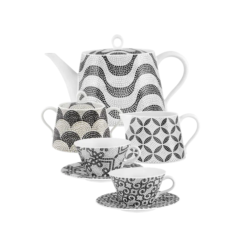 crafted from delicate limoges porcelain, each piece is decorated with hand-painted lines that evokes André’s personal memories of flaneuring within cities. the three-dimensionality quality of the pattern captures the intriguing perspectives of skyline as he gazes up into the sky. the lyrical lines are accentuated with gold gilding that plays with light and shadow across the surface of the tableware, adding a poetic quality.