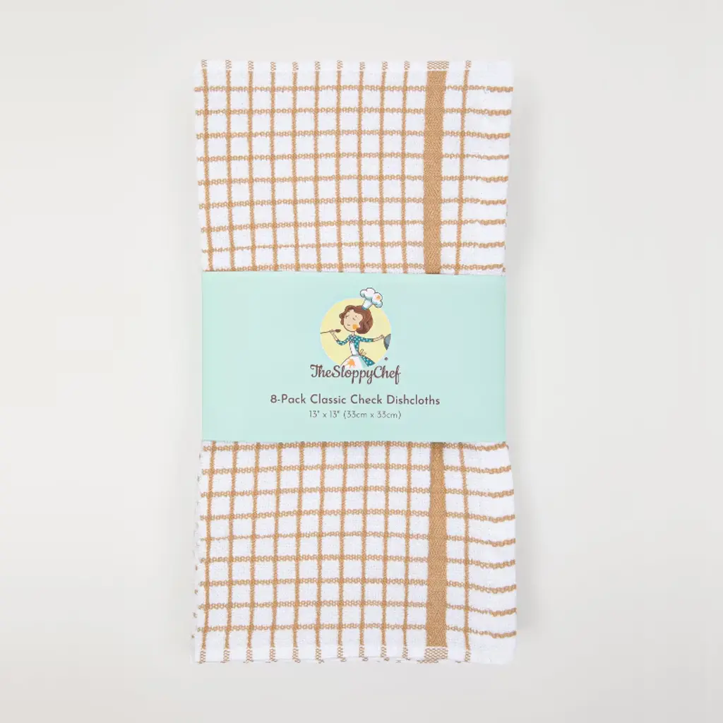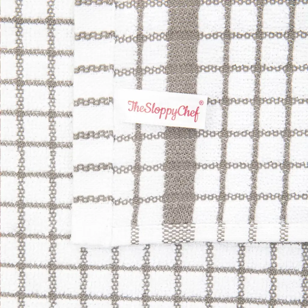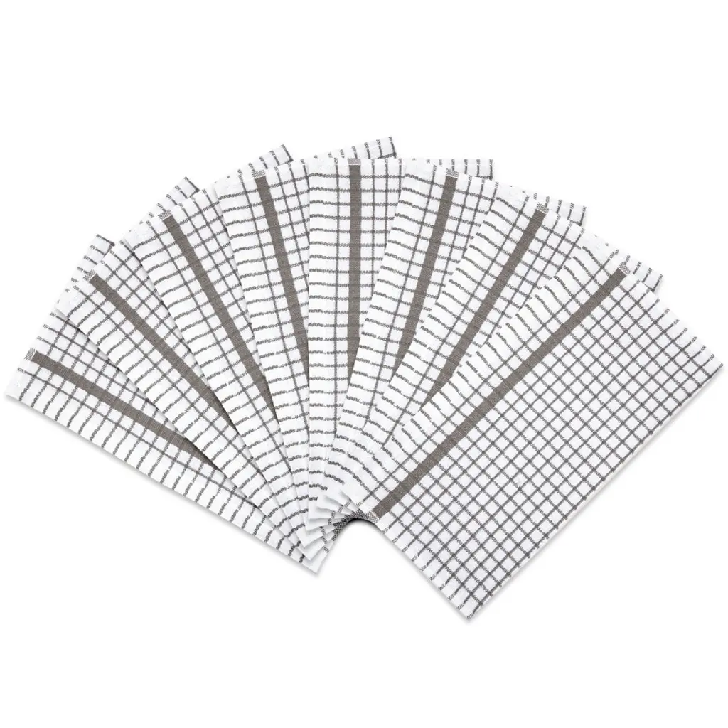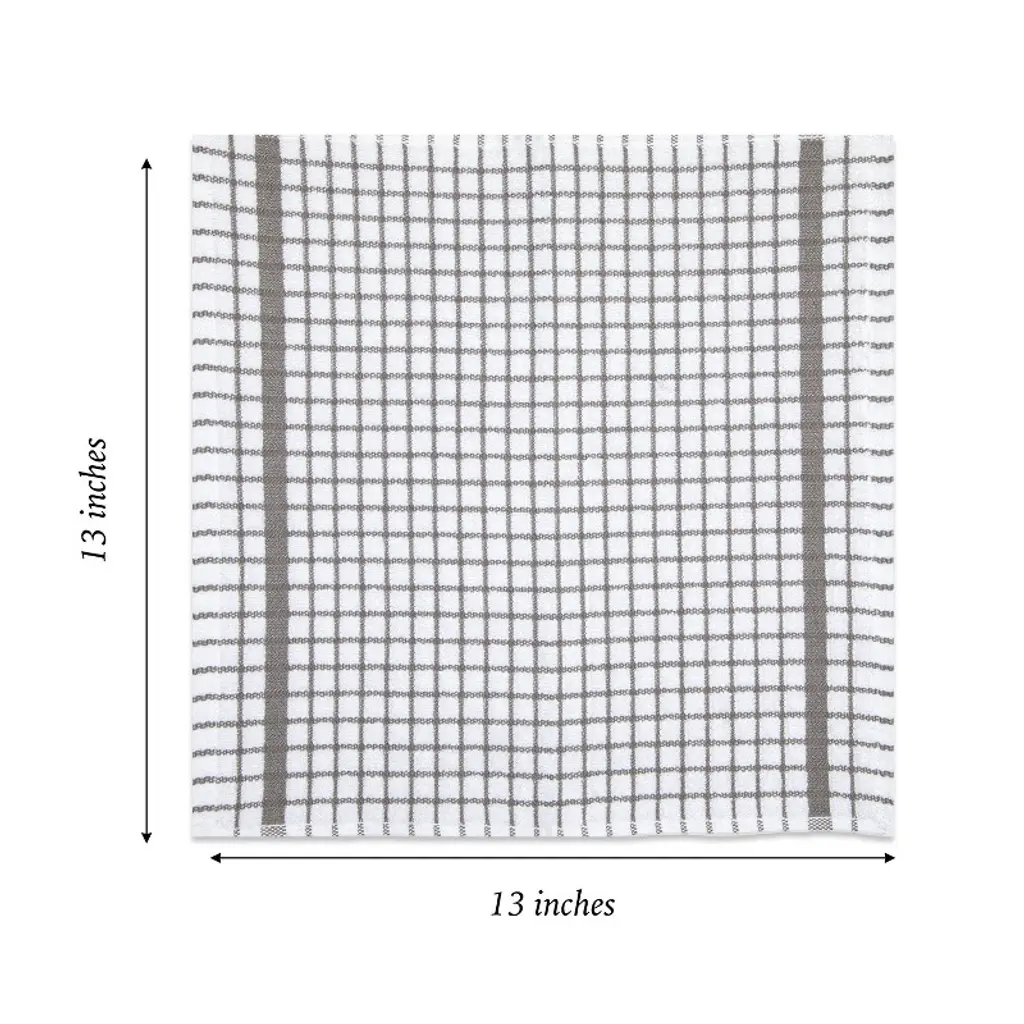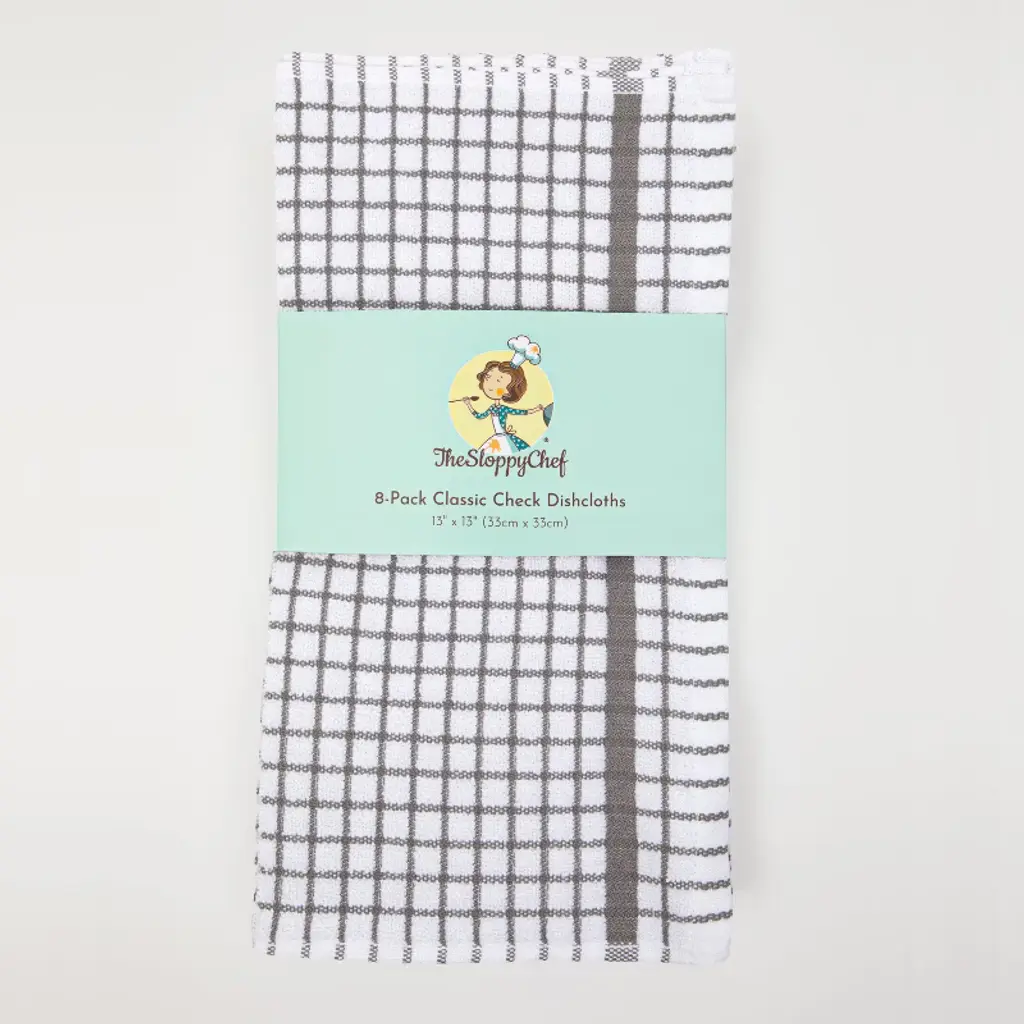 Sloppy Chef Classic Checkered Dishcloths (8 Pack), 13x13, Cotton - Grey