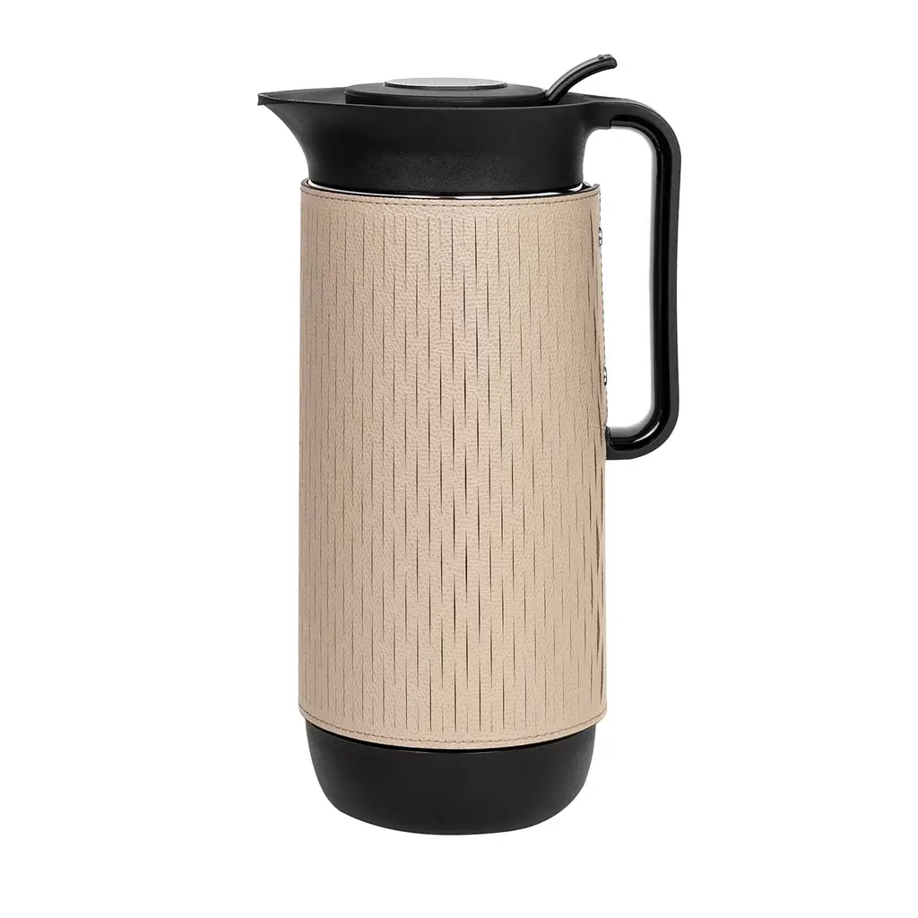 The functionality of a classic thermos meets the subtle elegance of nautical vibes in this exclusive steel design (1-liter capacity). Its bulging body is covered with black leatherette, which is partially enveloped into decorative rope matching in tone. This thermos is available in other sizes and color combinations, please inquire with the Concierge got options.