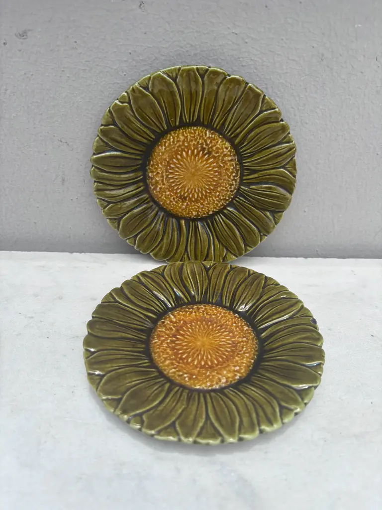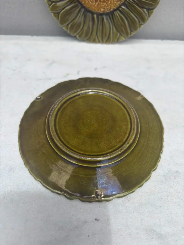 Small Majolica daisy plate circa 1900. 4.5 inches diameter.