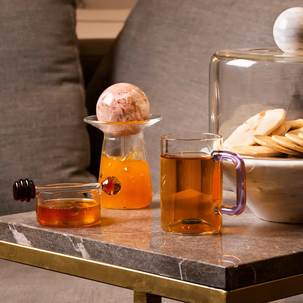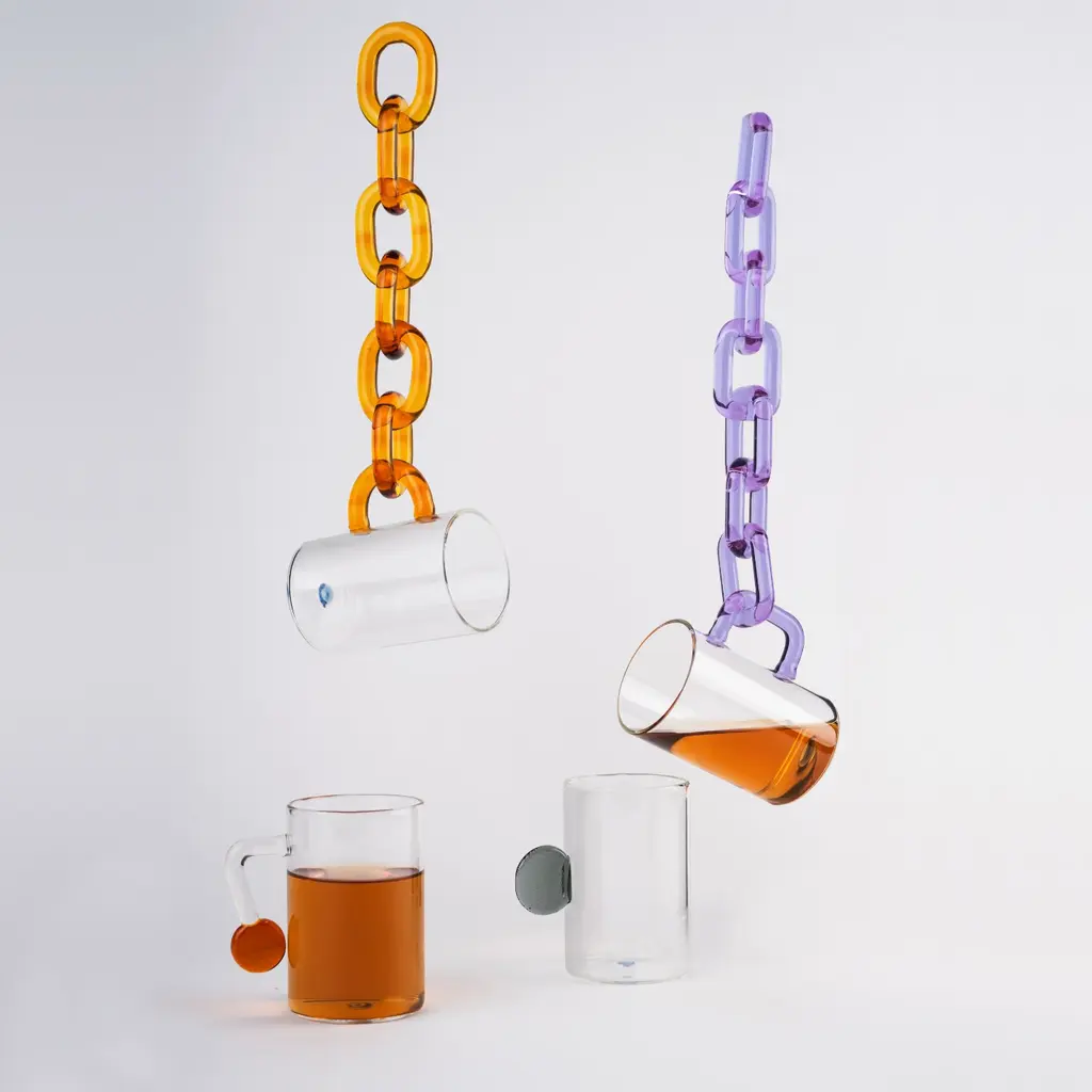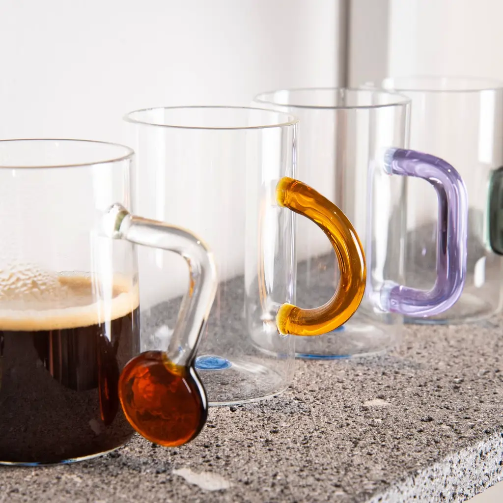 The and jacob coffee cup are handcrafted from borosilicate glass to withstand heat or cold.they are perfect for a good coffee or for tea time. There are 4 models with different handles.