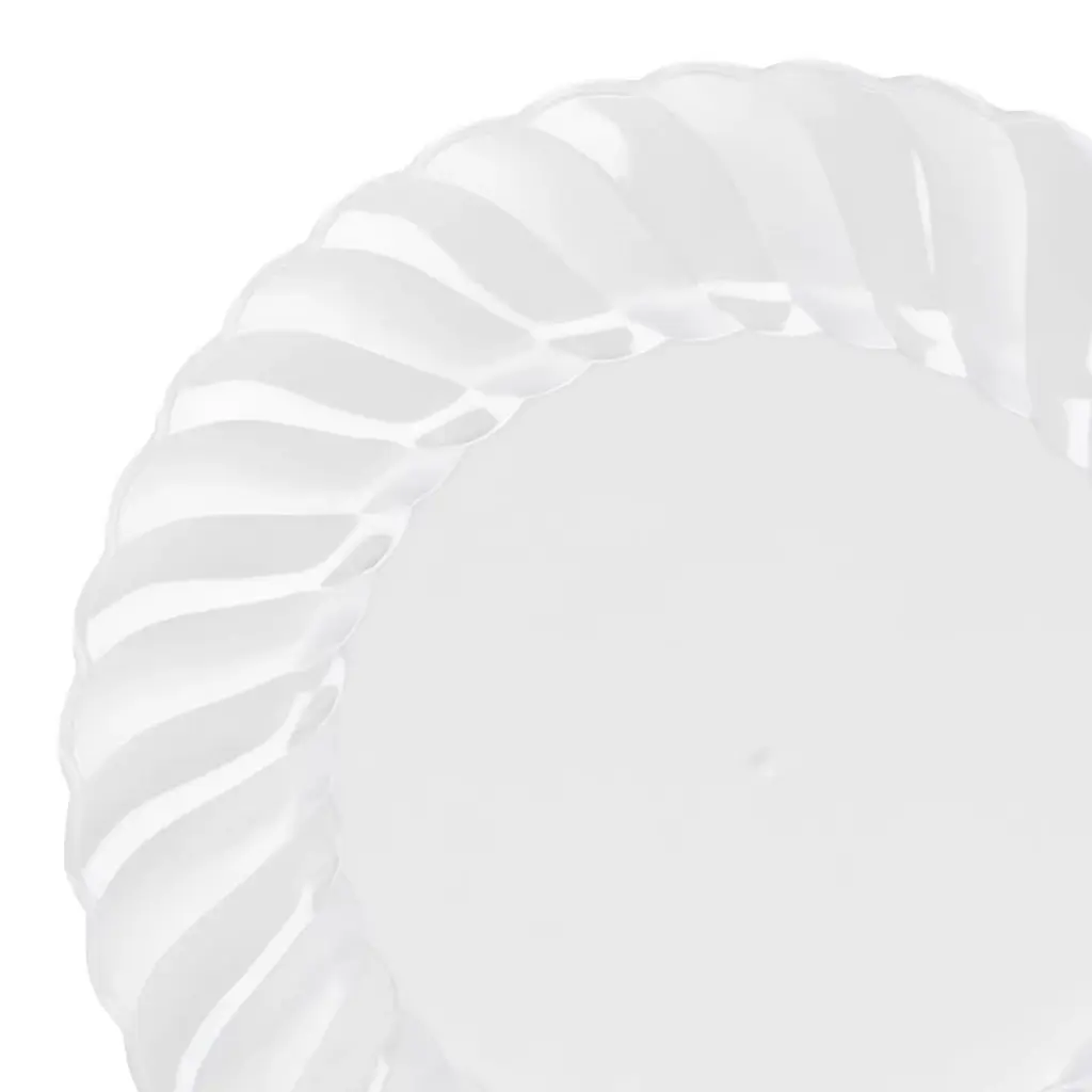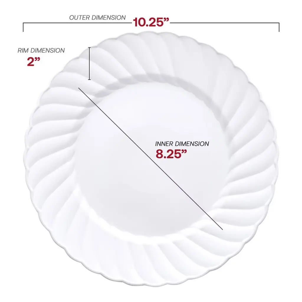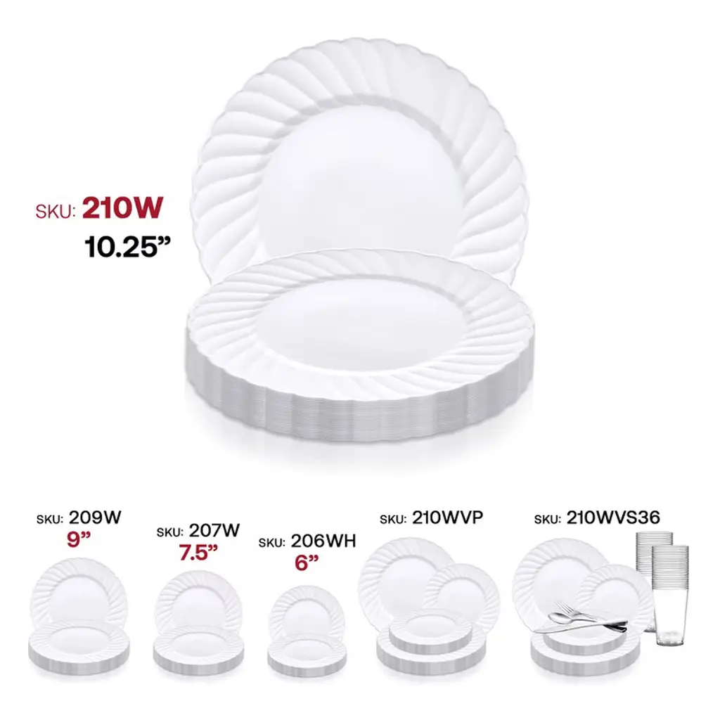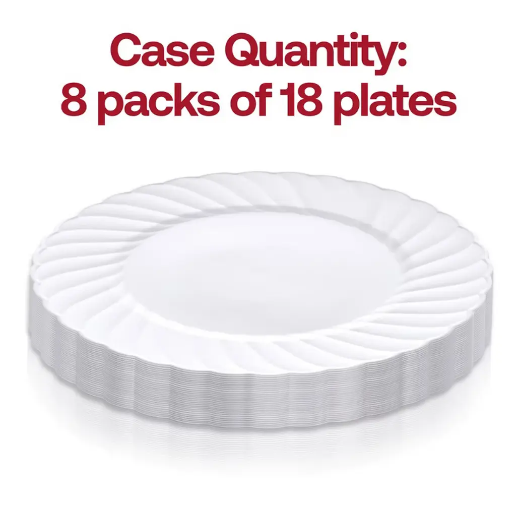 Are you looking for a disposable plate that's fancier and sturdier than a conventional paper plate? In that case, these simple yet elegant, all-white disposable plastic dinner plates are a fantastic choice. With the affordable price, excellent quality, beautiful style, and convenience of disposable design, these fancy white dinner plates adorned with flair-designed rims will provide all you need to enjoy your party worry-free.
