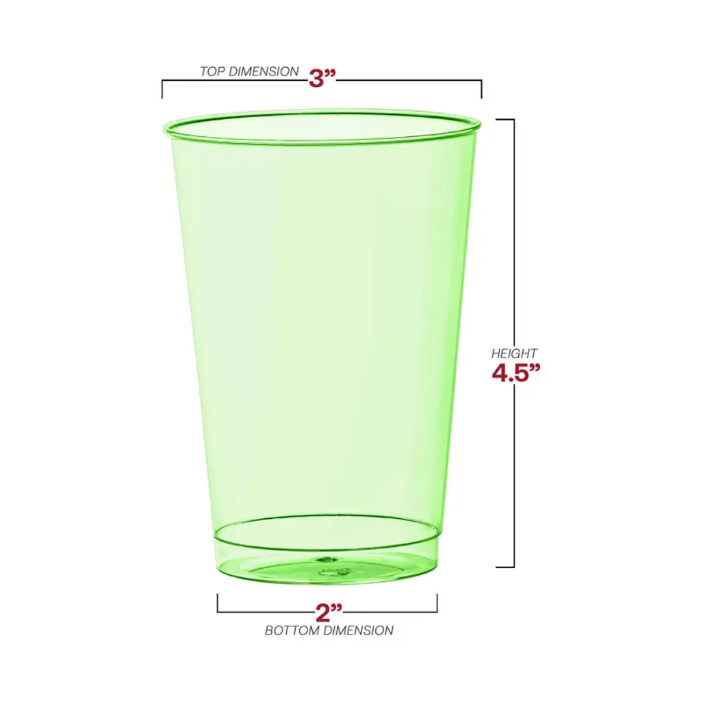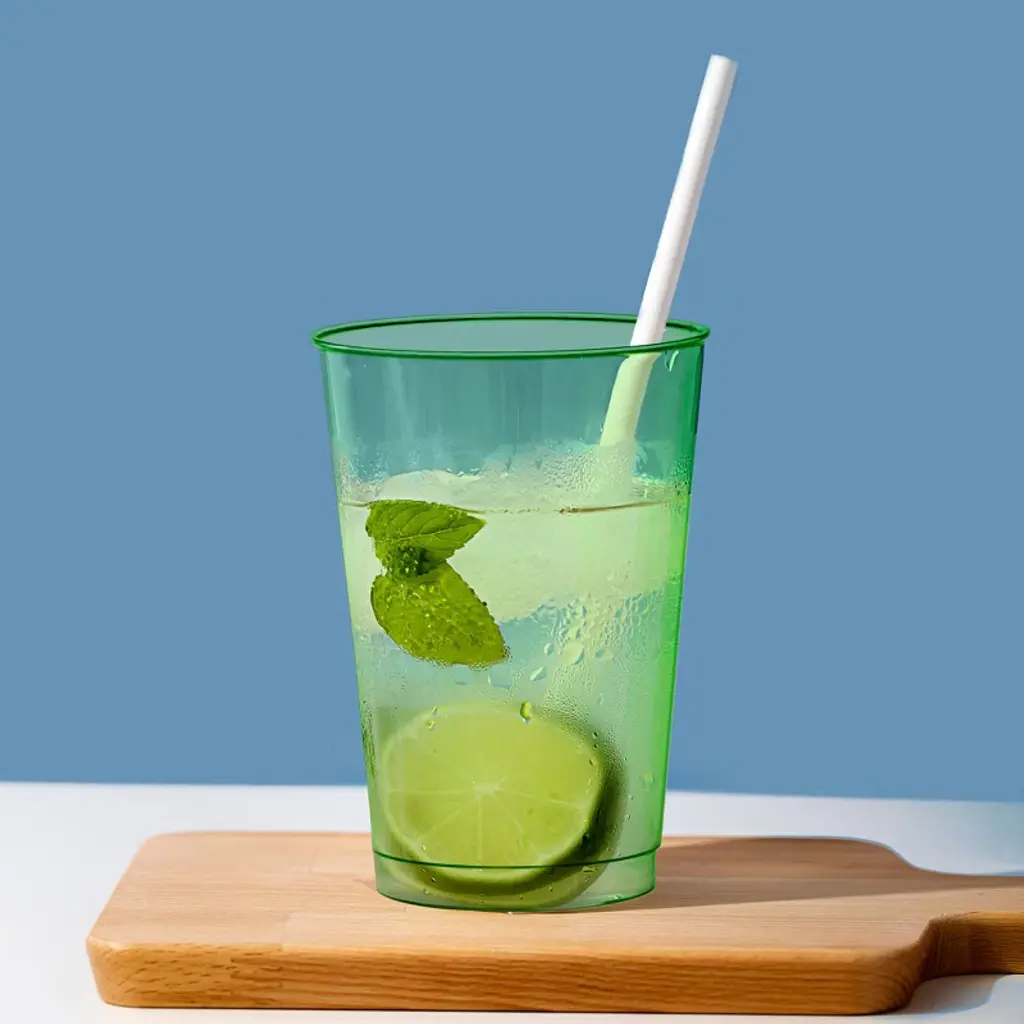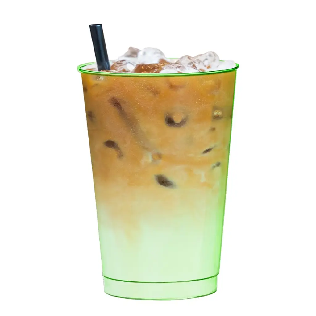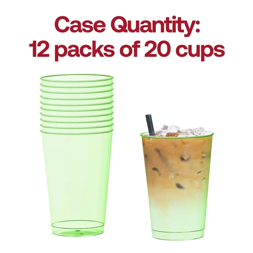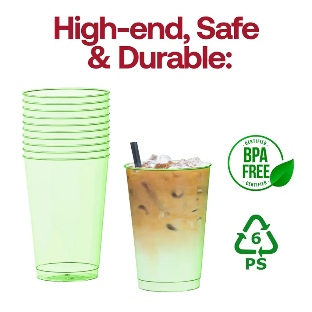 Serve vibrant drinks in eco-friendly style with our 12 oz. Clear Green Plastic Party Cups. Designed with an emerald-green tint and crystal-clear walls, these BPA-free tumblers mimic the look of glass while offering the safety and durability of shatterproof plastic. Their 12 oz. capacity is perfect for cold brews, smoothies, cocktails, or layered desserts, and the smooth rolled rim ensures a comfortable drinking experience. Stackable and recyclable, these cups are a must-have for event planners, caterers, and hosts looking to impress—whether it's a festive holiday brunch or a tropical beach celebration.