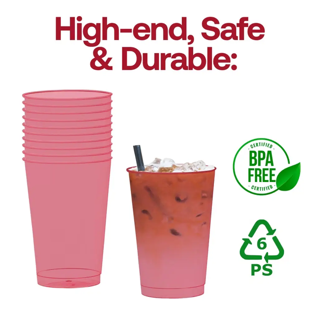Make a bold impression with our 12 oz. Clear Red Plastic Party Cups—where vibrant color meets crystal clarity. These ruby-tinted tumblers are crafted from durable, BPA-free plastic that mimics the brilliance of glass without the risk of breakage. Ideal for festive cocktails, sodas, or even layered desserts, their smooth rolled rim ensures a comfortable sip, while the stackable design keeps prep and cleanup simple. Whether you're hosting a Valentine's brunch, holiday party, or spirited tailgate, these cups deliver standout style and effortless functionality.