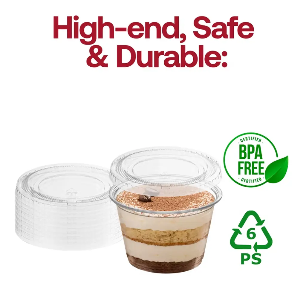 Serve sauces, dips, and tasting portions with confidence using our 2.5 oz Clear Plastic Portion/Soufflé Cups with Lids. Each cup is crafted from sturdy, food-safe plastic and paired with a clear, tight-fitting lid to prevent spills and lock in freshness. The transparent design allows for easy identification of contents, while the compact, stackable build ensures space-saving storage—ideal for restaurants, catering services, food trucks, and home gatherings. Whether you're portioning dressings, mini desserts, or condiments, these disposable cups offer professional presentation and hassle-free cleanup.