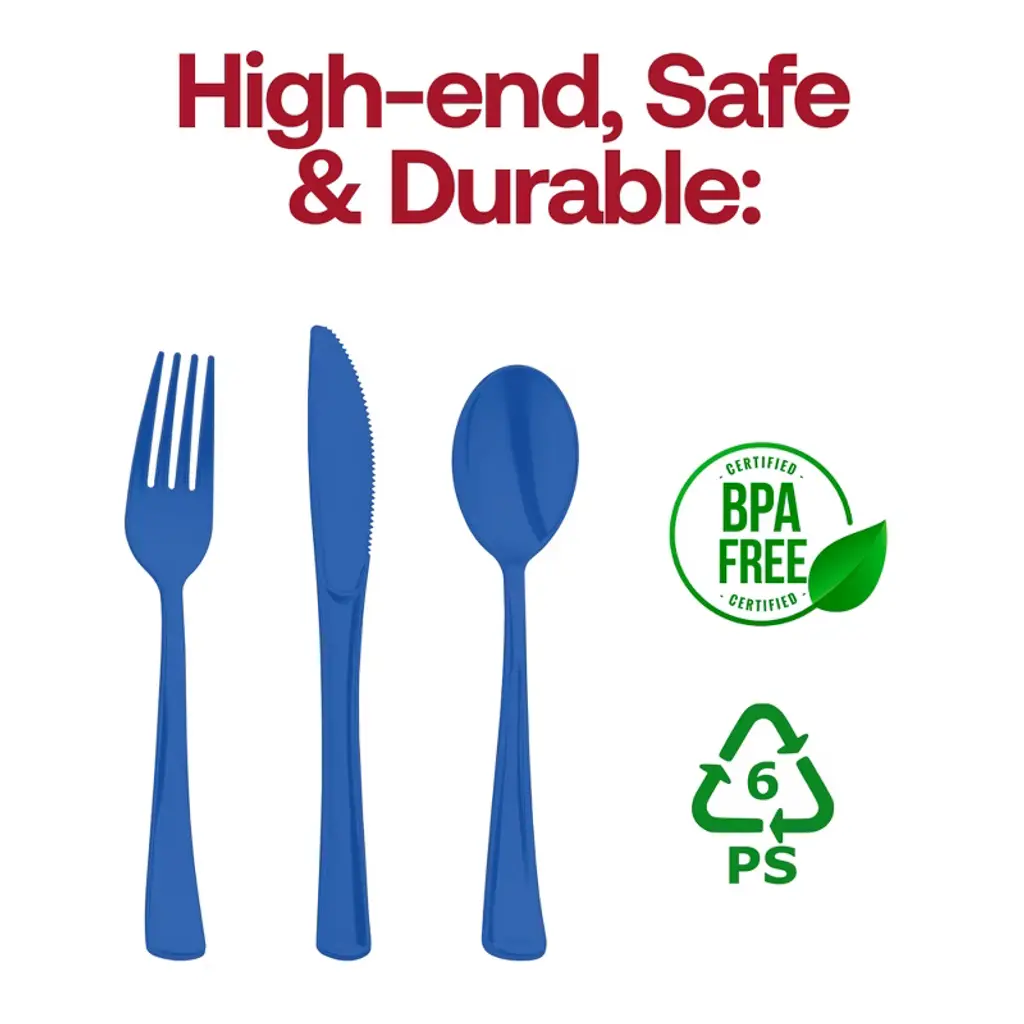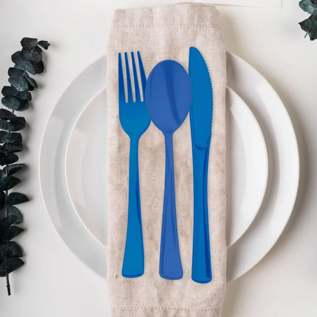 Serve in style with our Blue Disposable Plastic Party Cutlery Set—a bold, all-in-one solution for colorful, hassle-free entertaining. Featuring matching forks, knives, and spoons in a striking blue finish, this set brings polished presentation to birthdays, BBQs, baby showers, and more. Each piece is crafted from sturdy, BPA-free plastic designed to resist bending and mimic the elegance of real flatware. Lightweight, durable, and disposable, this vibrant cutlery set adds flair to your table while saving time on cleanup