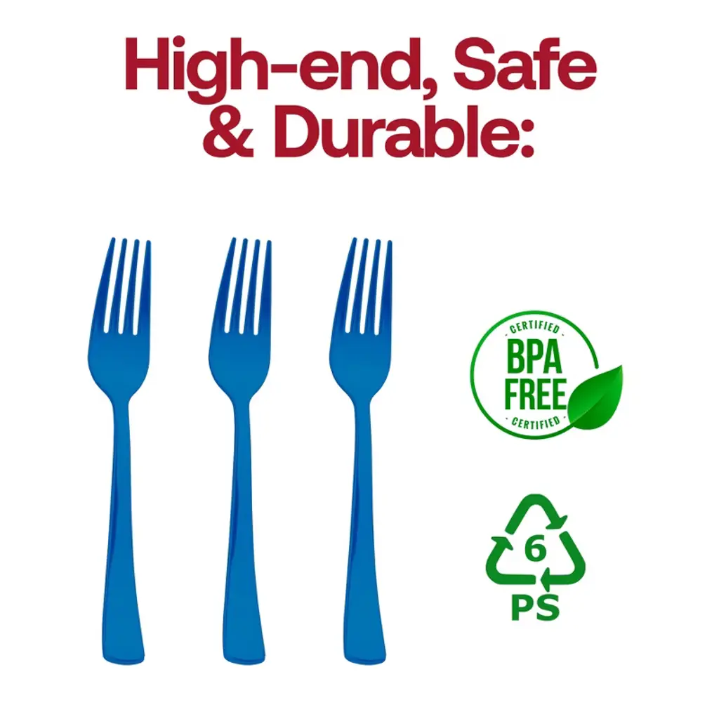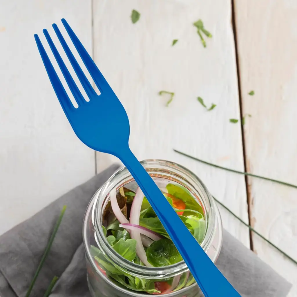Add a splash of coastal charm to your table with our Blue Disposable Plastic Forks. Crafted from durable, BPA-free plastic, these 7¼" forks combine a vibrant sky-blue finish with the strength needed for hearty entrées and delicate desserts alike. The smooth, four-tine design offers reliable performance without bending, while the ergonomic handle ensures comfortable use for guests of all ages. Perfect for beach weddings, themed birthdays, or casual cookouts, these disposable and recyclable forks bring color, convenience, and style to any event.