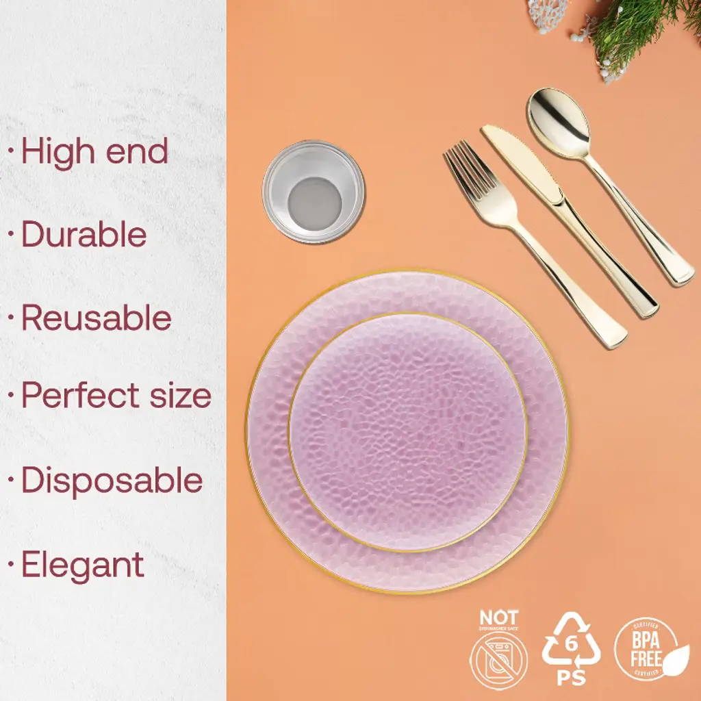 Smarty Had A Party Clear Pink W/ Gold Rim Hammered Glass Plastic Dinnerware Set - 120 Sets