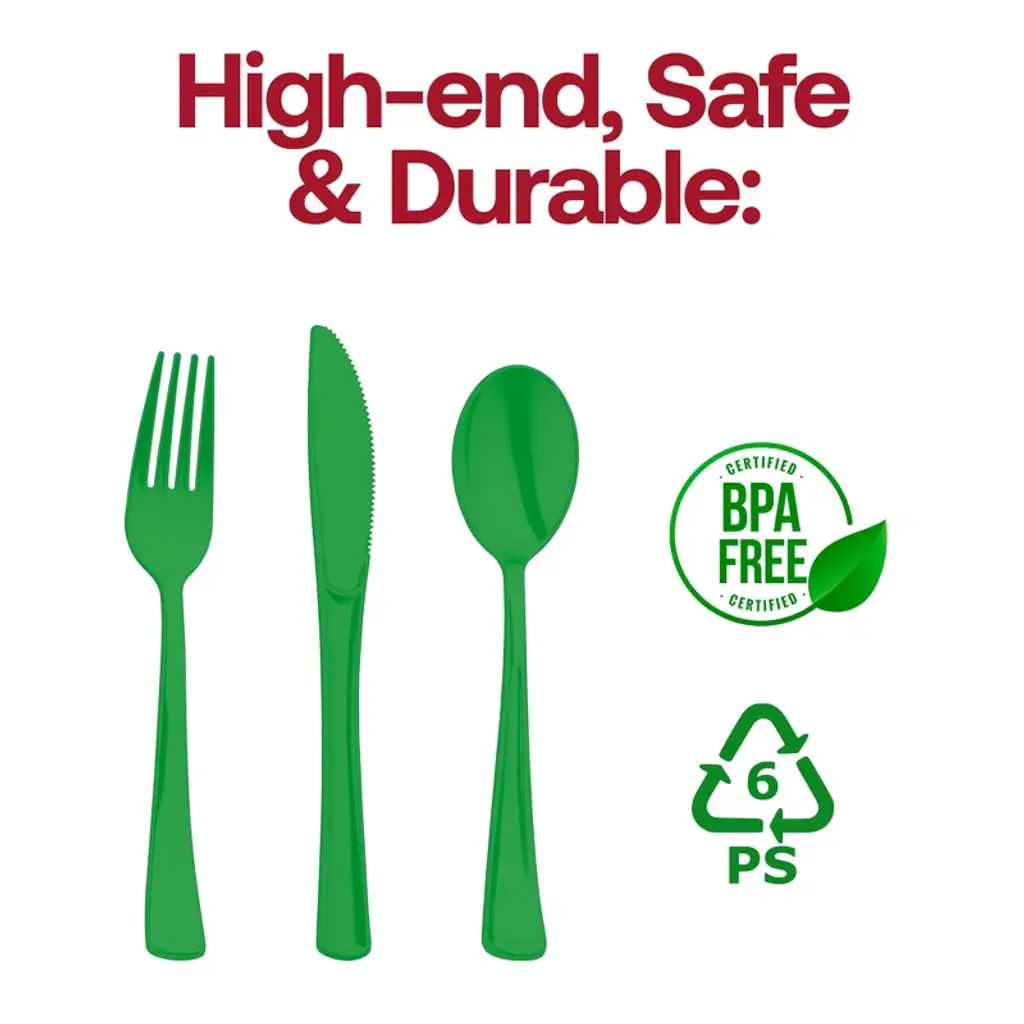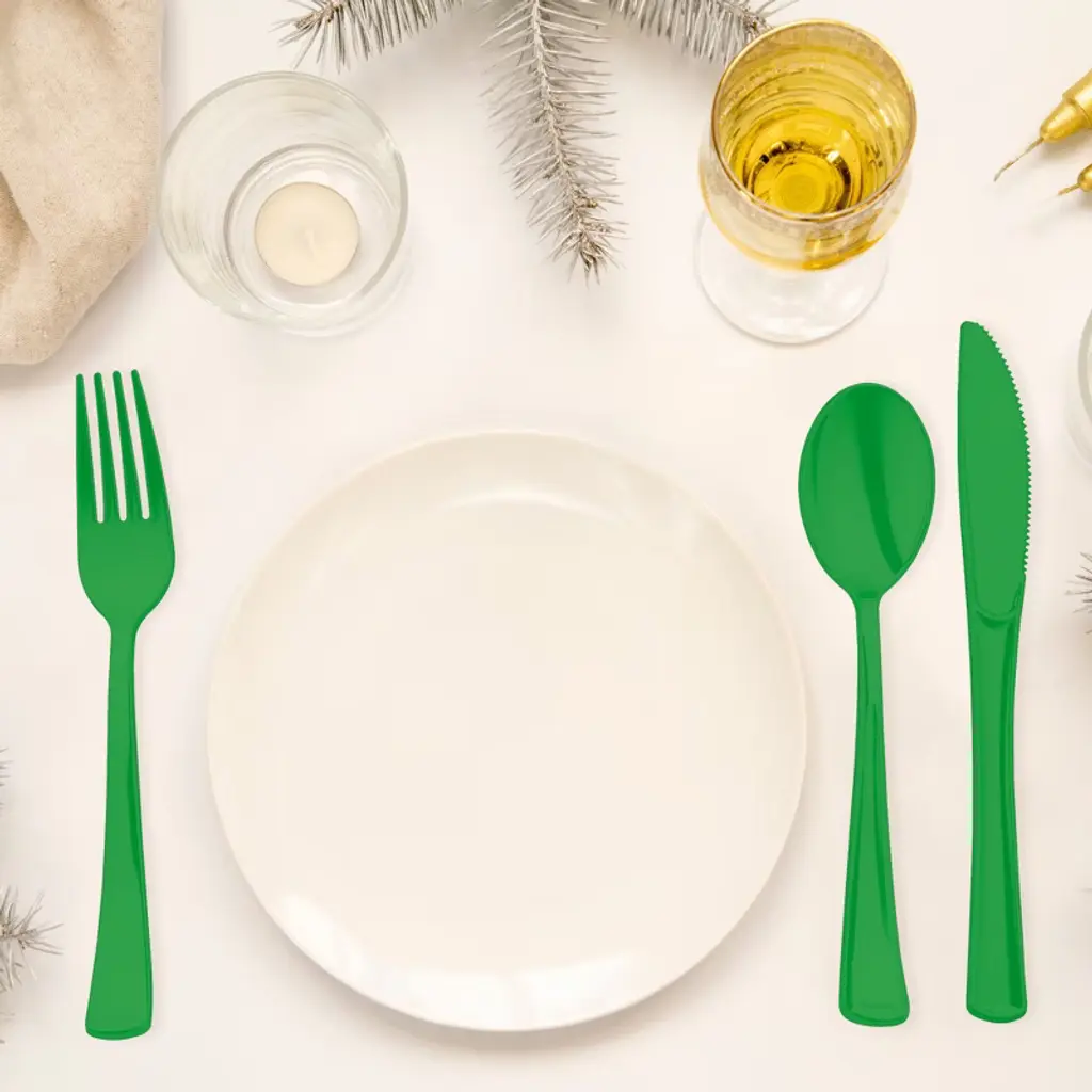 Turn any occasion into a vibrant, eco-inspired celebration with our Green Disposable Plastic Party Cutlery Set. This complete set includes forks, knives, and spoons made from sturdy, BPA-free plastic—strong enough to handle everything from steak dinners to sweet parfaits. The rich green color pairs perfectly with botanical themes, nature-inspired décor, and seasonal celebrations like St. Patrick’s Day. With a polished finish and nestable design, this cutlery set is ideal for caterers, event planners, and party hosts looking to combine style, convenience, and sustainability in one smart solution.