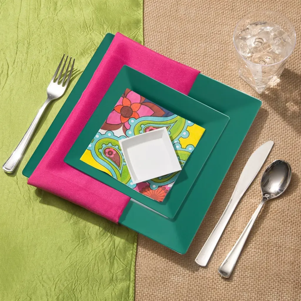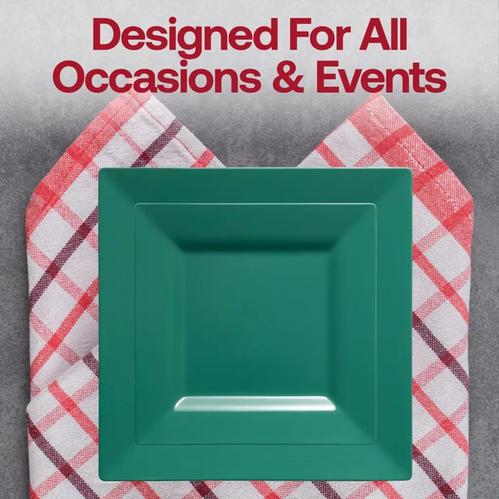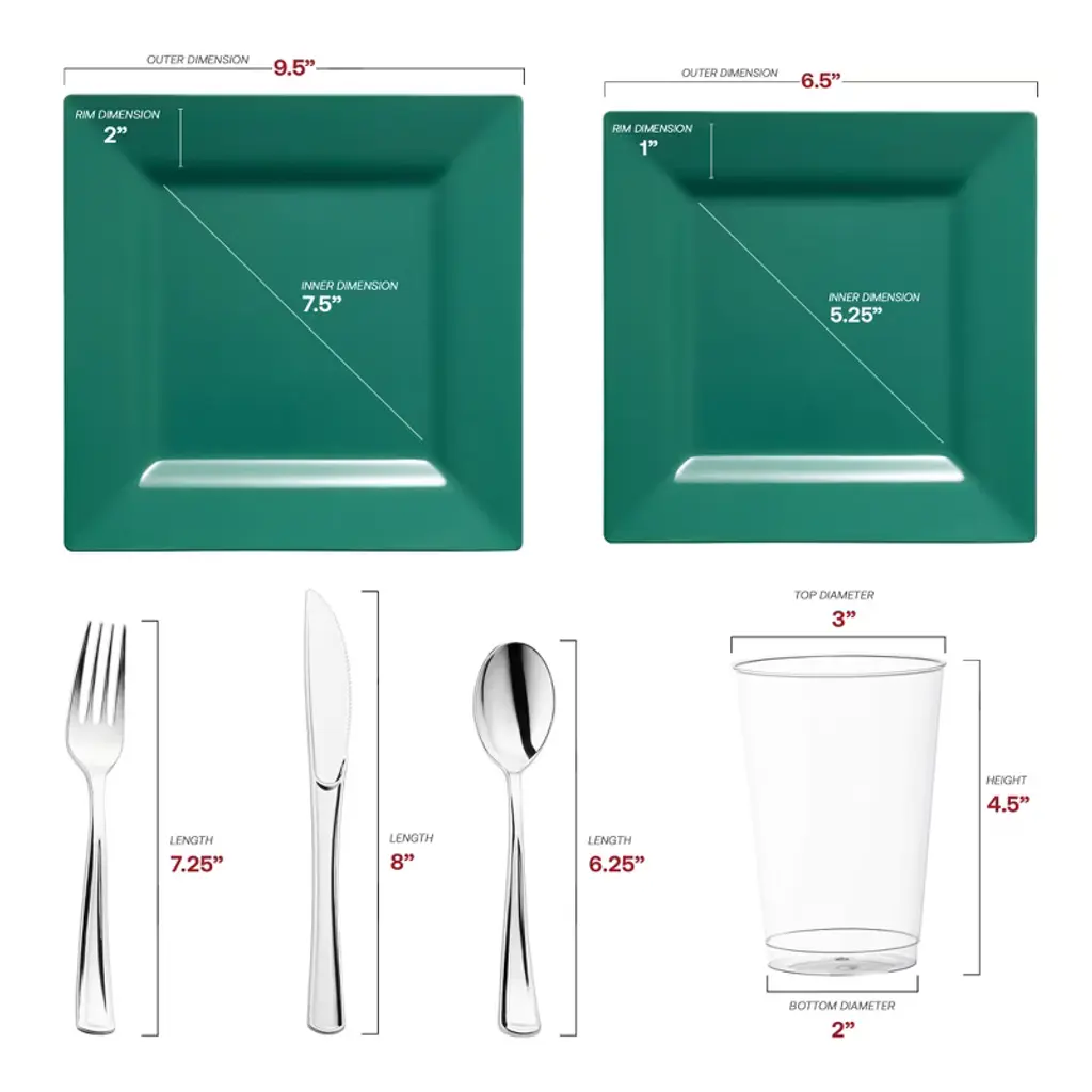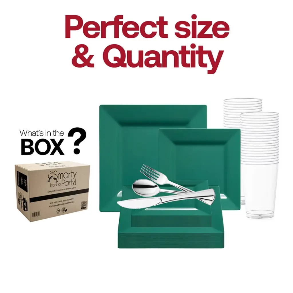 Smarty Had A Party Hunter Green Square Plastic Plates Wedding Set - 120 Sets