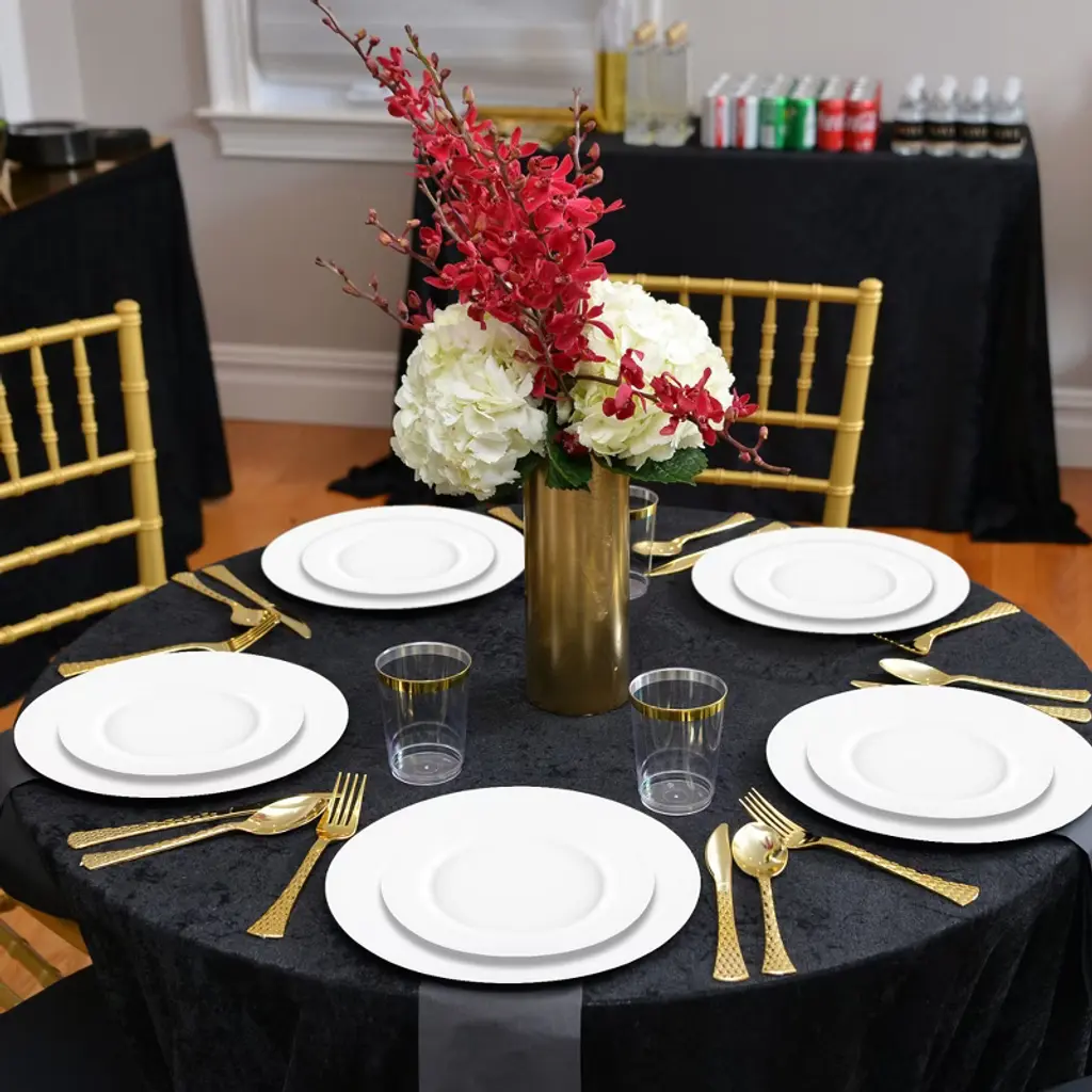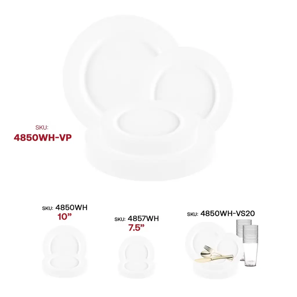 The matte milk white round disposable plastic dinnerware value set is an elegant addition to your party supplies collection! The premium set includes 120 dinner plates and 120 salad plates. These are elegant, must-have party supplies that can be used for various occasions such as birthdays, weddings, anniversaries, and more! They are made of durable plastic and designed for disposable use, making the cleanup a snap.