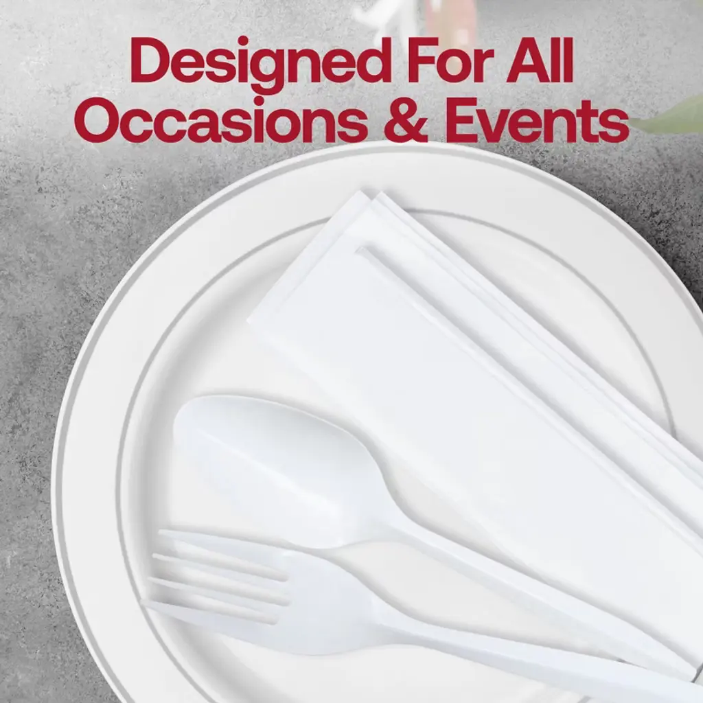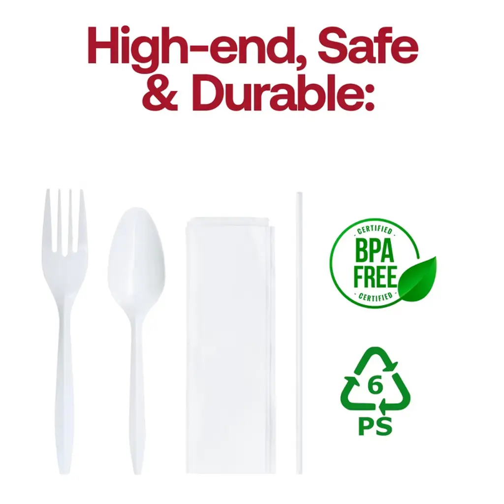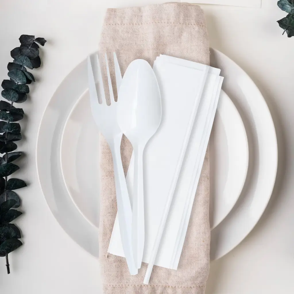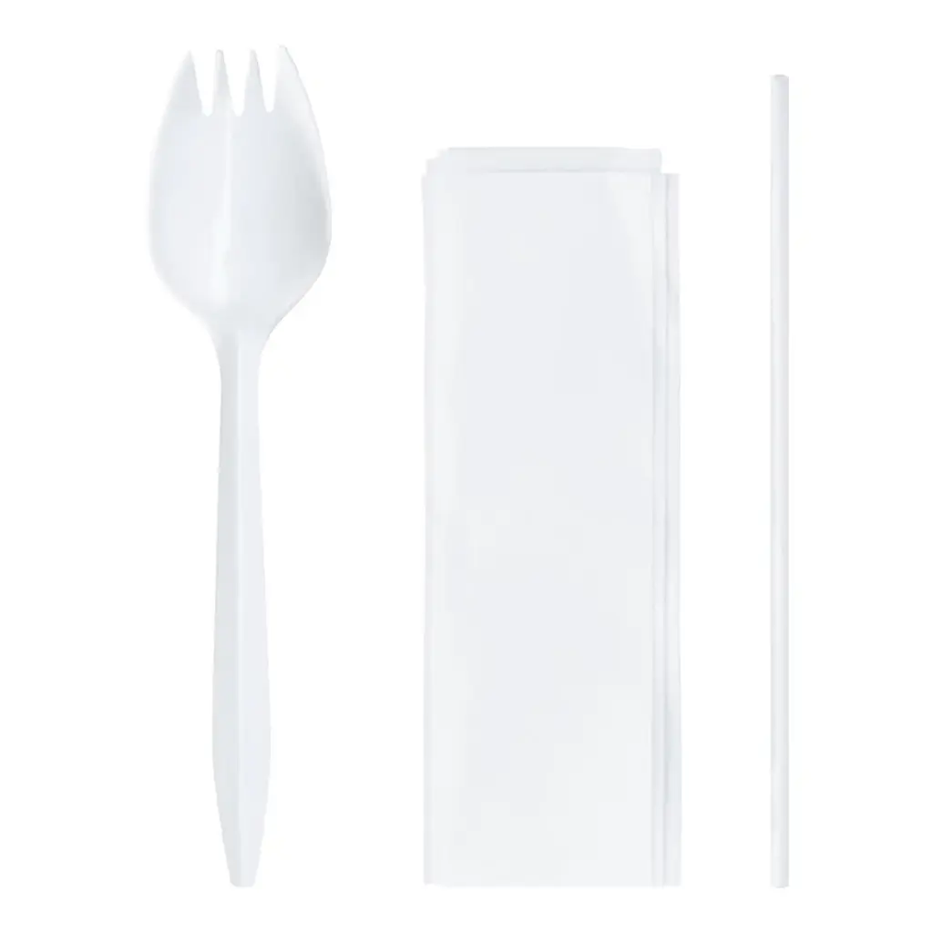 Make every meal more convenient with the MW Disposable Plastic Cutlery Kit—an all-in-one solution for clean, efficient dining on the go. Each individually wrapped kit includes a sturdy white plastic fork, a smooth teaspoon, a versatile milk straw, and a soft single-ply paper napkin—perfectly portioned for catered lunches, picnics, food trucks, and event service. Designed for hygiene, portability, and performance, this kit helps reduce cleanup time while providing your guests with everything they need for a complete, no-fuss dining experience.