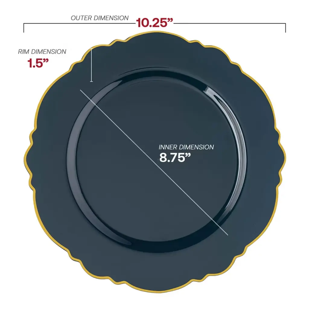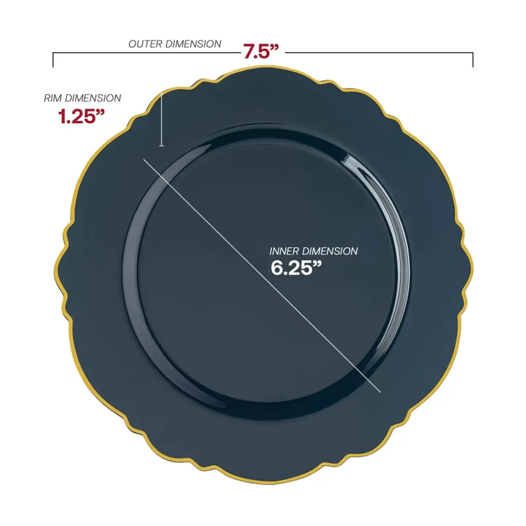 Smarty Had A Party Navy W/ Gold Rim Round Blossom Plastic Dinnerware Set - 40 Sets