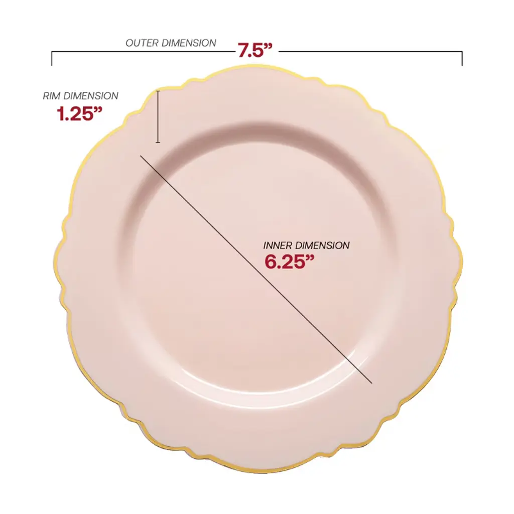 Smarty Had A Party Pink W/ Gold Rim Round Blossom Plastic Dinnerware Set - 40 Sets