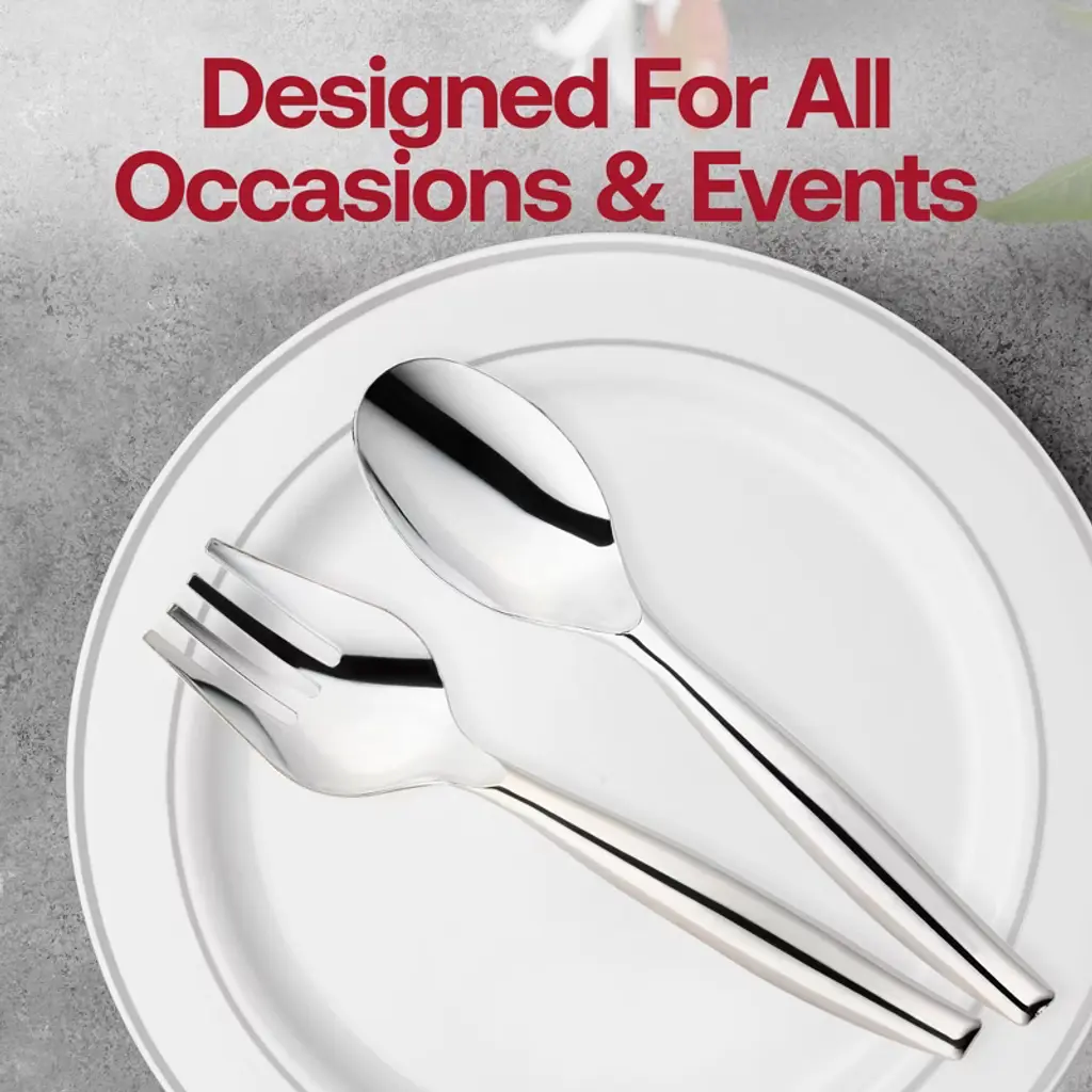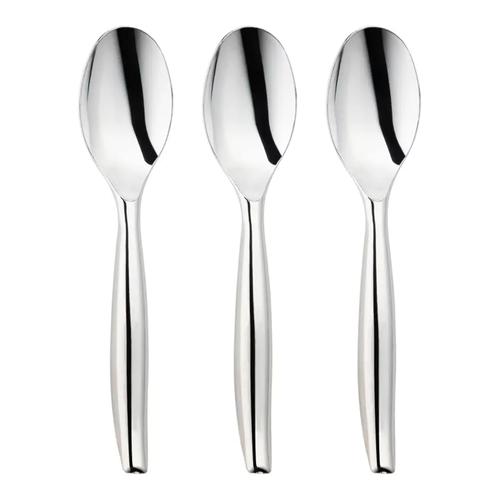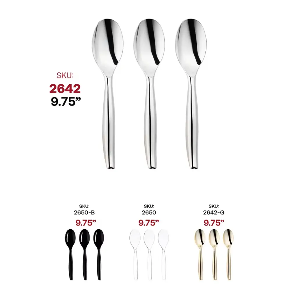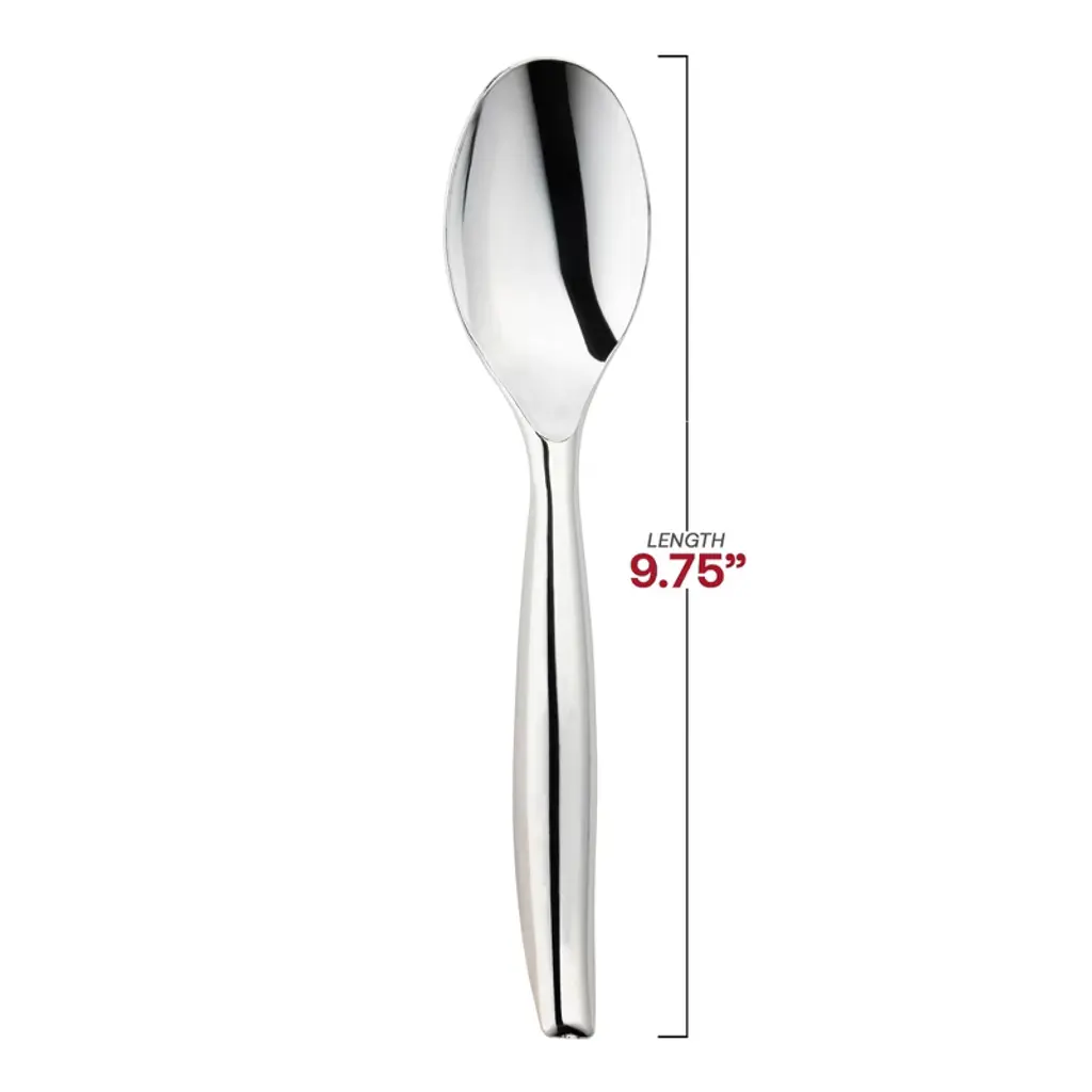 Make even your buffet tables elegant and eye-catching when you use the silver disposable plastic serving spoons. These serving spoons are large and heavy enough to be reused. The disposable plastic design of these premium spoons also means you can toss them out with the recycling if you don't feel like washing them.