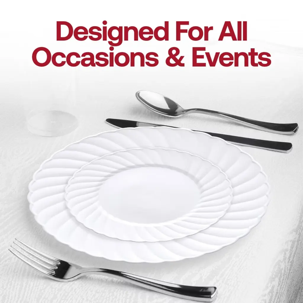 Opt for our White Flair Plastic Dinnerware Set to adorn your event tables. Durable and disposable a must-have for easy, fuss-free entertaining. Buy now!