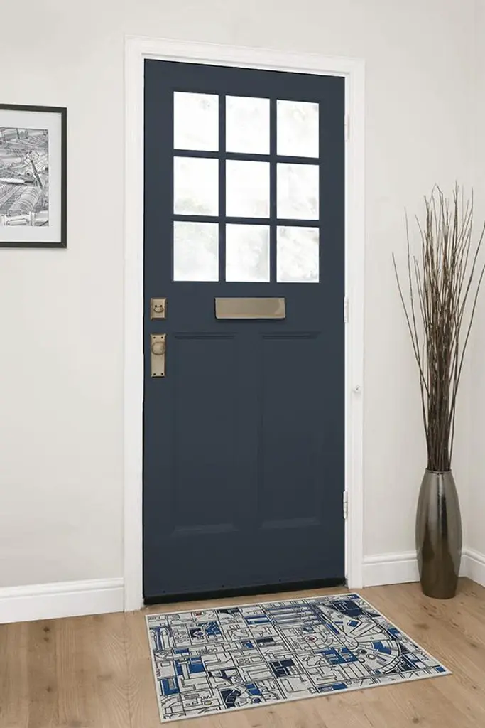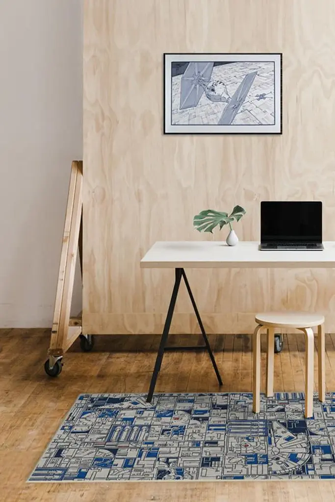 Immerse yourself in the intricate web of the Star Wars galaxy with our Smugglers Geo R2-D2 Blue Rug. Hand-drawn in iconic hues of blue, bone white, and a pop of rust red from your favorite droid, this rug uses linear and spherical shapes to reveal the inner workings of the Death Star, with a few subtle elements of the Millennium Falcon hidden within. Meticulously designed in startling details, this rug will surely be enjoyed by Star Wars fans of all ages.