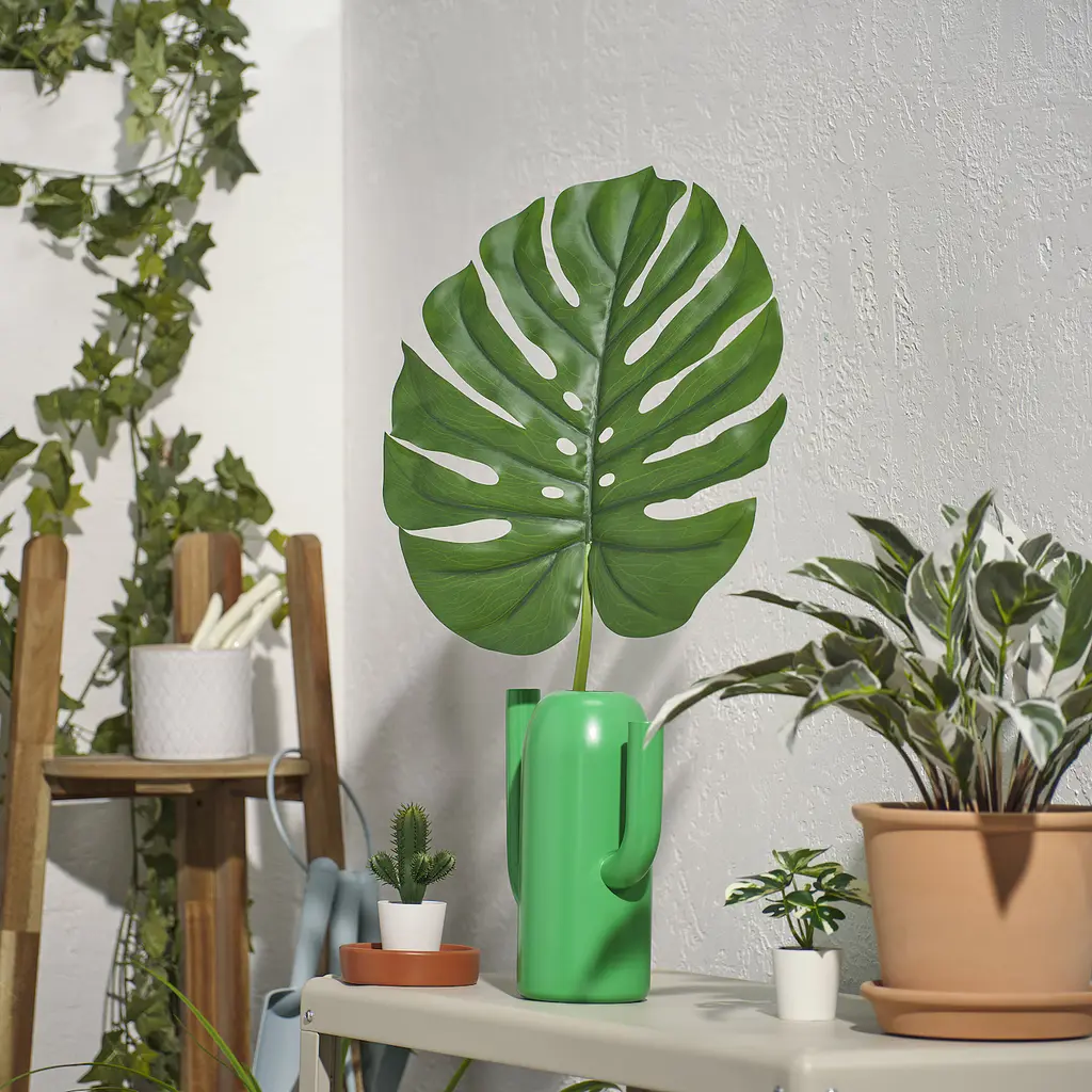 SMYCKA Artificial leaf - indoor/outdoor/monstera green 31 ½ ". Lifelike artificial flower that remains just as fresh-looking and beautiful year after year. The stem can be shortened by using cutting pliers. Nice as a decoration both indoors and outdoors. Suitable for indoor and outdoor use.