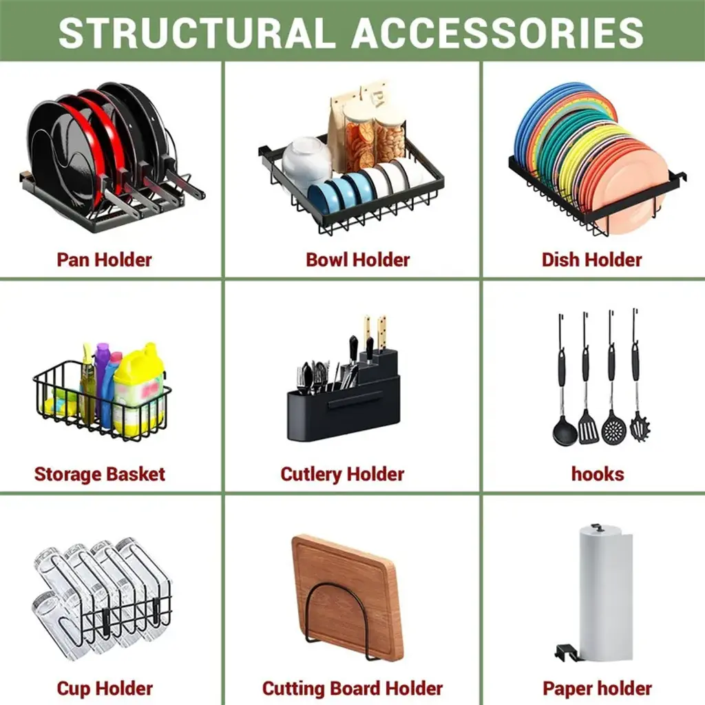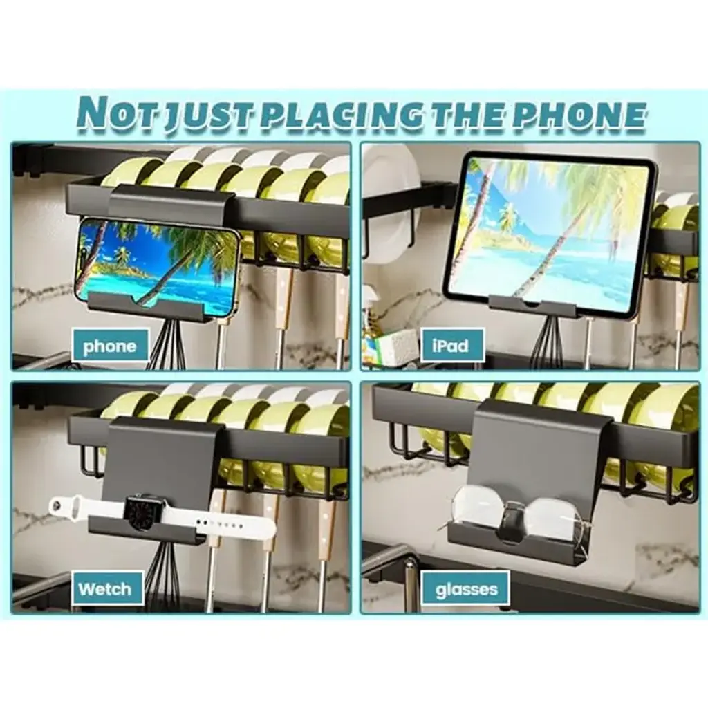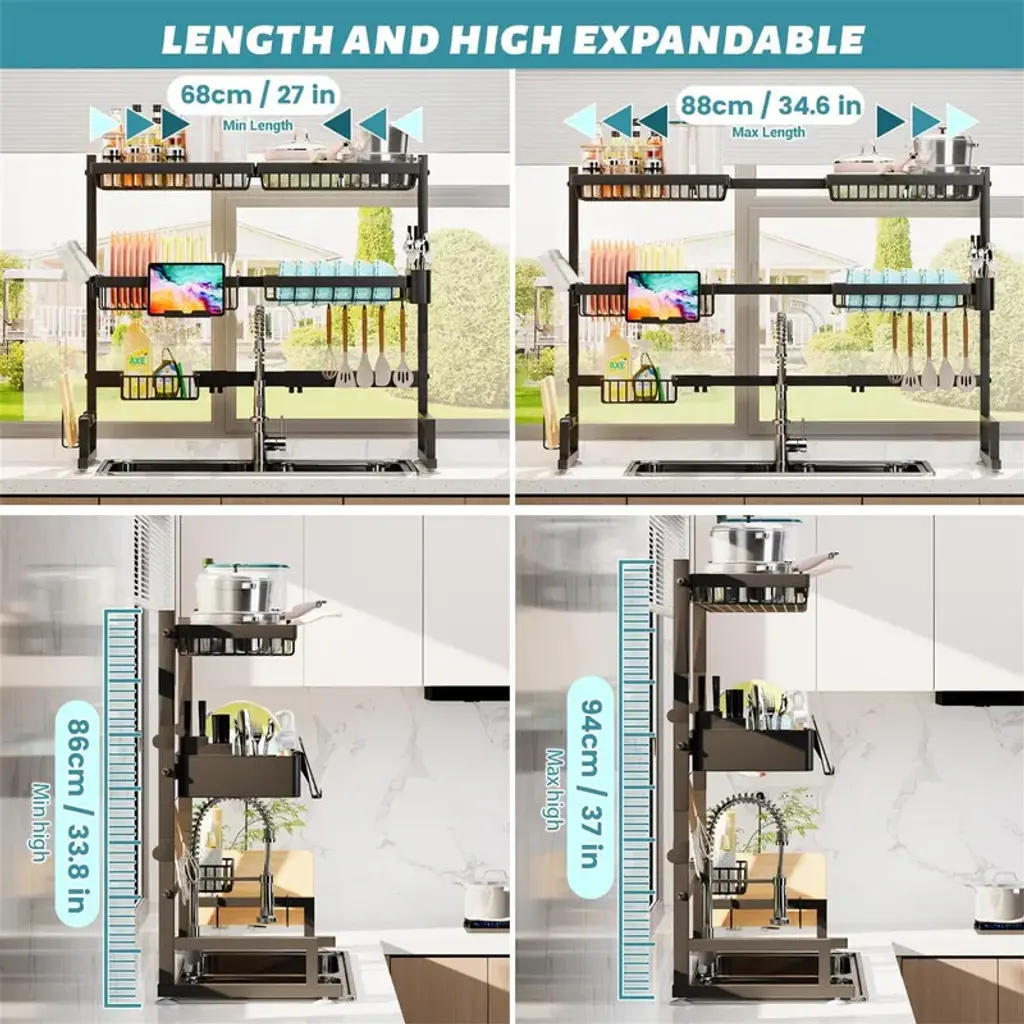 1. **Vertical Space Maximization**: This over-the-sink dish drying rack effectively drains water directly into the sink, making it perfect for small kitchens. 2. **Adjustable Compatibility**: Length can be adjusted from 26.8" to 34.6", accommodating various faucet heights and maximizing kitchen space. 3. **Durable Stainless Steel Material**: Made from high-quality metal, this rack is designed for long-term use, supporting a weight capacity of up to 80 pounds. 4. **Variety of Colors Available**: Comes in multiple colors to match your kitchen decor, adding a stylish touch to your functional storage. 5. **User-Friendly Installation**: Easy-to-follow instructions ensure a hassle-free setup, allowing you to organize your kitchen efficiently.