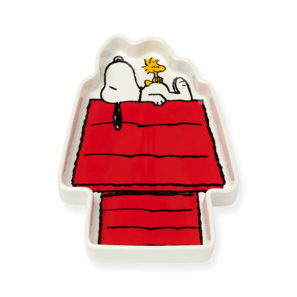 Create happy moments every day with Snoopy and Woodstock. Peanuts creator Charles M. Schulz’s Peanuts characters have delighted fans for decades—and with this shaped dish, you can invite Snoopy and Woodstock into your home. Made from vegan hand-glazed stoneware—no bone ash was used in their production—the dish is printed with one of Schulz’s most beloved motifs: Snoopy napping on top of his doghouse. His birdy bestie, Woodstock, is perched on the beloved beagle’s tummy. The shape of the dish outlines the illustration. Use the dish as a catchall for your keys and small tech accessories or just display it anywhere you need some Snoopy joy. The Snoopy Doghouse Stoneware Dish measures 1h x 5.5w x 7.9"d