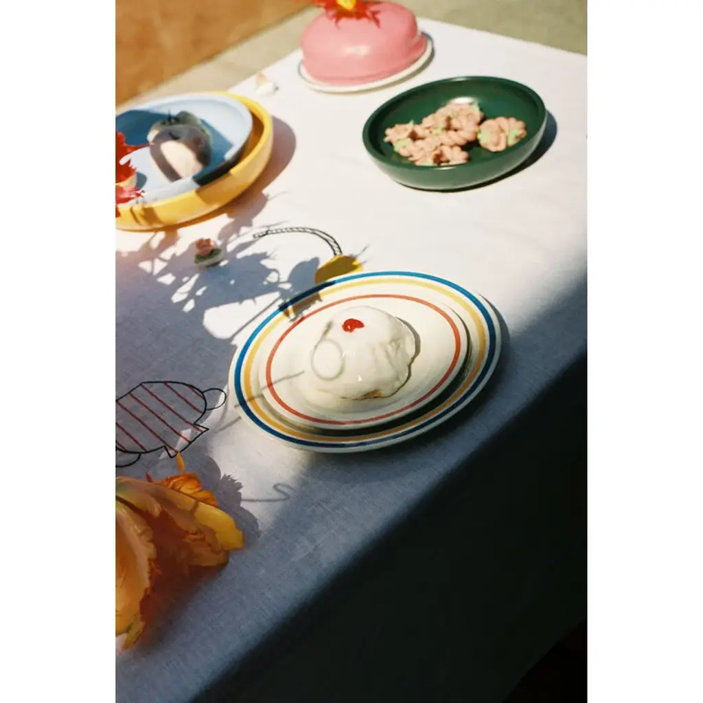 HAY's Sobremesa plate is a cheerful and attractive dish created by Egyptian chef and artist Laila Gohar, designed to make cooking and dining an experiential affair. The beautiful, hand-painted stoneware plates are suitable for both everyday settings and festive occasions, and they are easy to combine with other tableware sets as well. Sold in pairs, the Sobremesa plate also works as a decorative item when taking a break from being the adorned center of the table setting – the functional dish keeps small items in check without compromising on fun. The Sobremesa collection, created in collaboration with Laila Gohar and HAY, is a true feast for the senses. The colorful and friendly objects invite you to transform a meal into something extraordinary. For Gohar, a meal is a story that involves much more than just eating; it is about carefully choosing the ingredients, preparing the food with thought and soul, setting the table, enjoying the meal with friends or family, and finally, Sobremesa – a moment linked to Spanish culture, where you linger around the table enjoying the atmosphere and life itself.