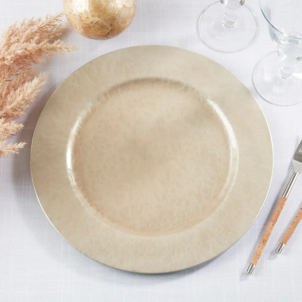 Impress your guests with the Soft Glow Faux Mother of Pearl Charger Plates. This stylish and durable foundation for your dinnerware adds a layer of elegance and refinement to your table settings. Crafted to last, they are a staple for those who love entertaining.Features: