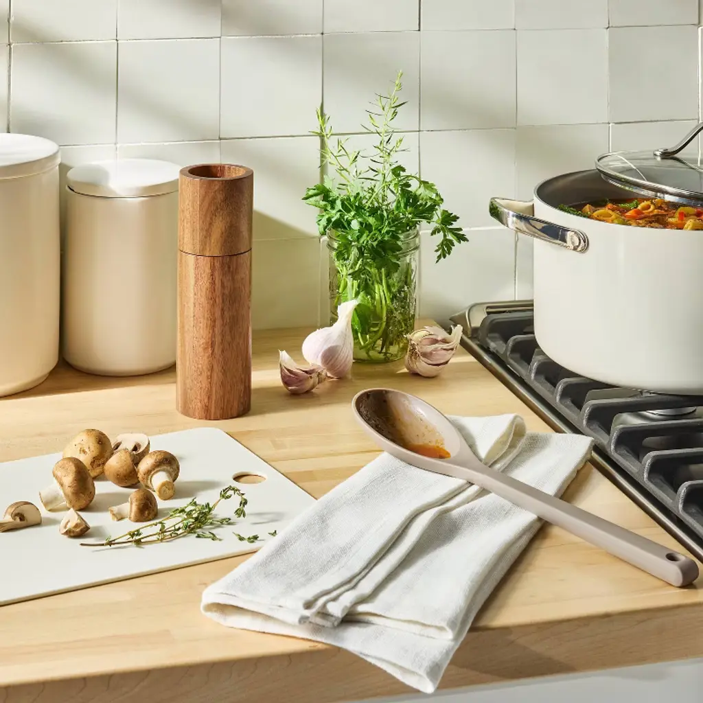 Make mealtime prep smoother with this Soft-Grip Nylon Spoon from Figment™. Designed in a gray hue and made from BPA-free nylon that prevents scratching of different cookware surfaces, this solid spoon features a soft-grip handle for easy use. Plus, the built-in hanging hole in the handle offers a space-saving storage option. Heat-resistant up to 450°F, you can toss it in the dishwasher for easy cleaning.Figmint™: Mixing up a taste of adventure every day.
