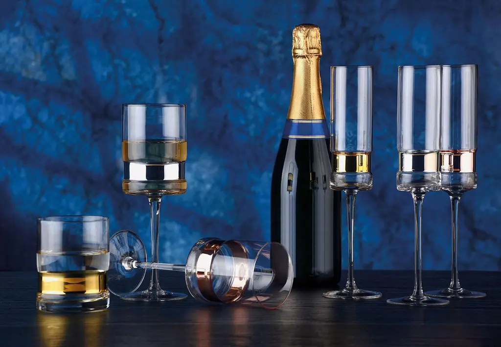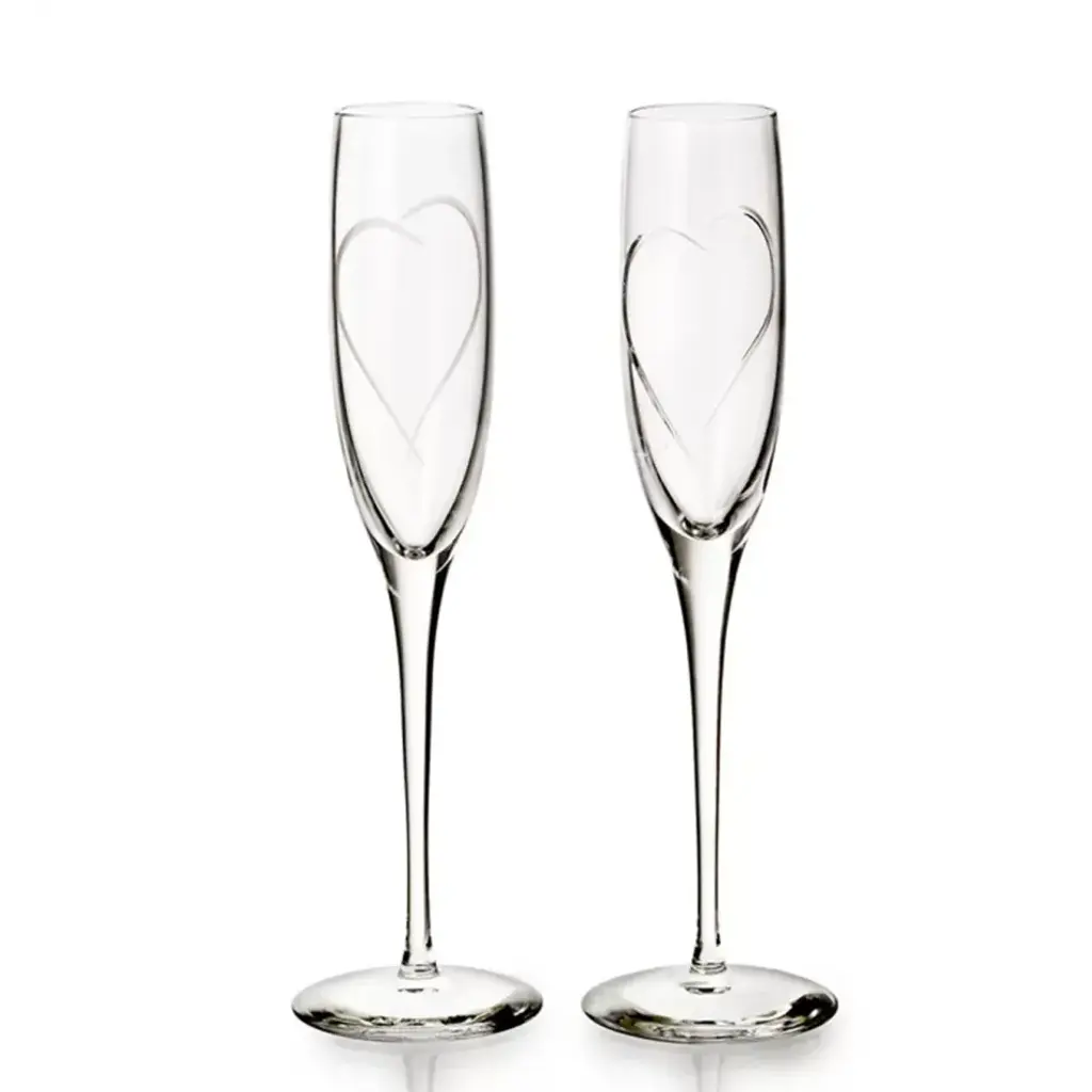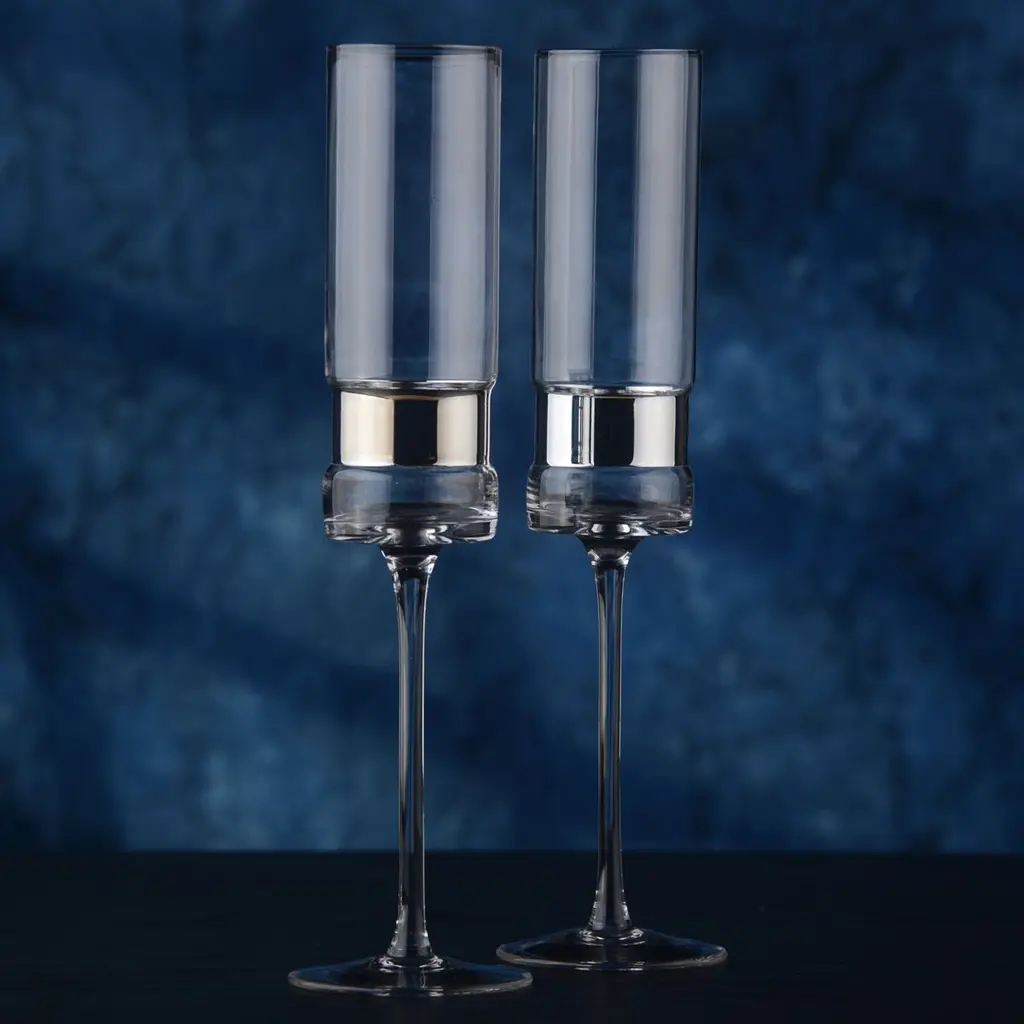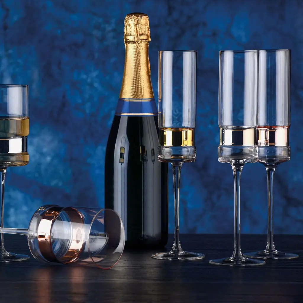 Add a touch of sophistication to your celebrations with SoHo champagne flutes. The bright metallic band adds glamour to the contemporary straight-sided glasses. Mouth blown and handcrafted, these glasses come in a gift box with stunning metallic trim.