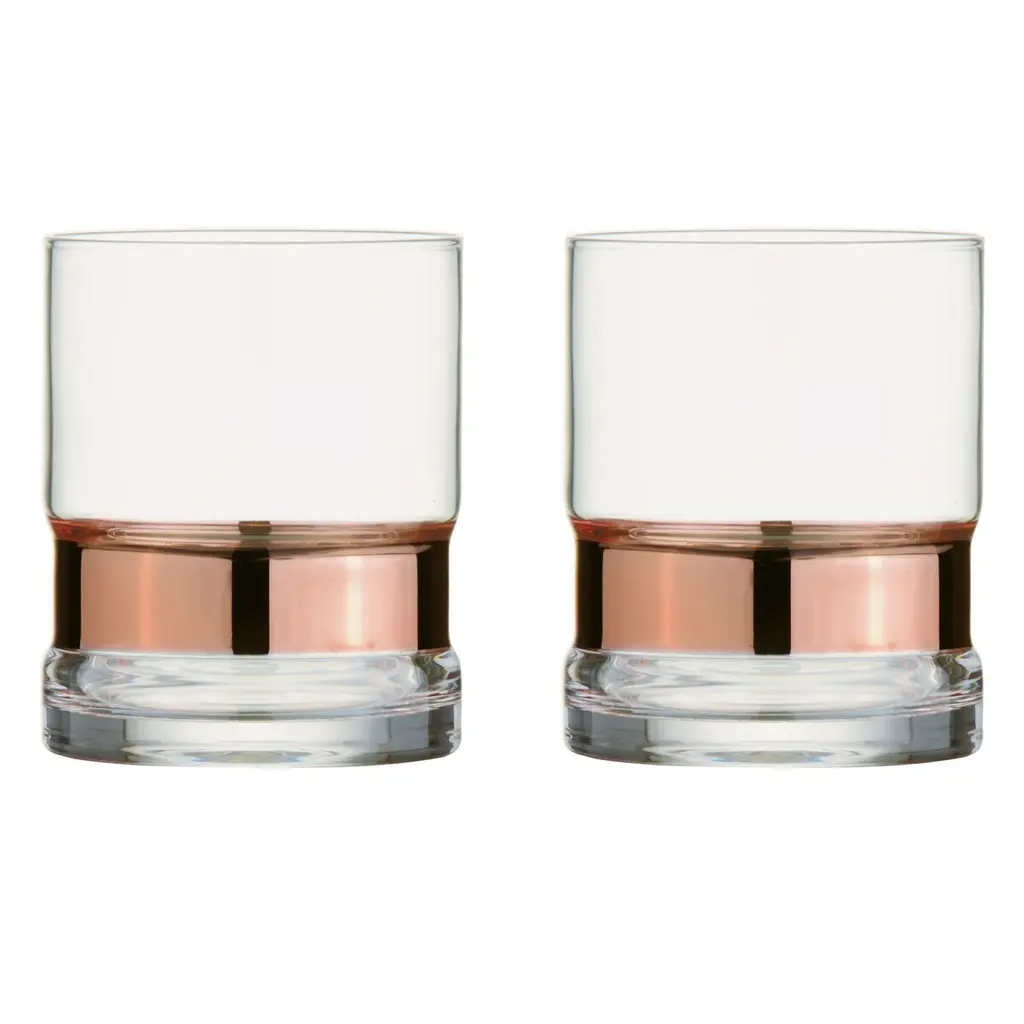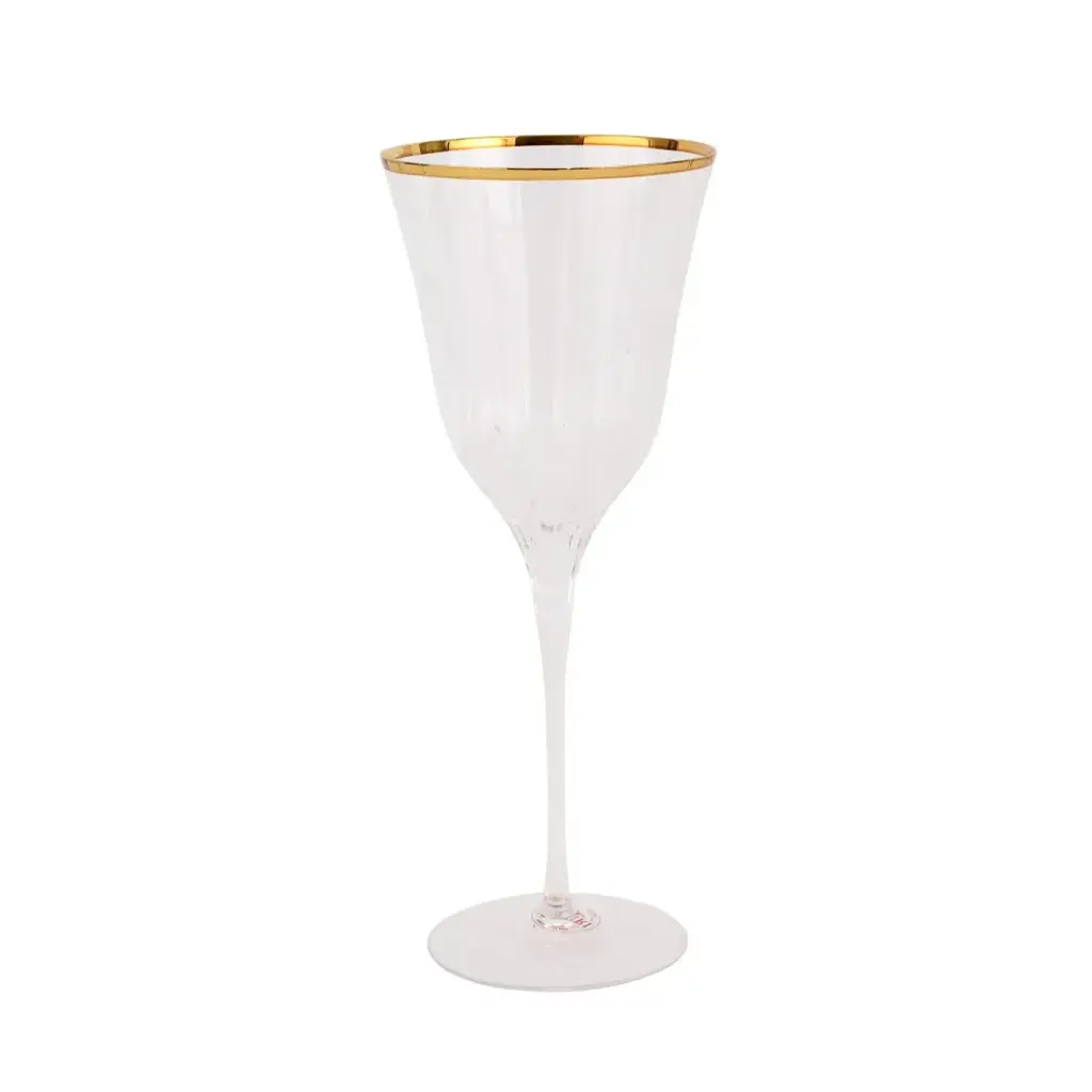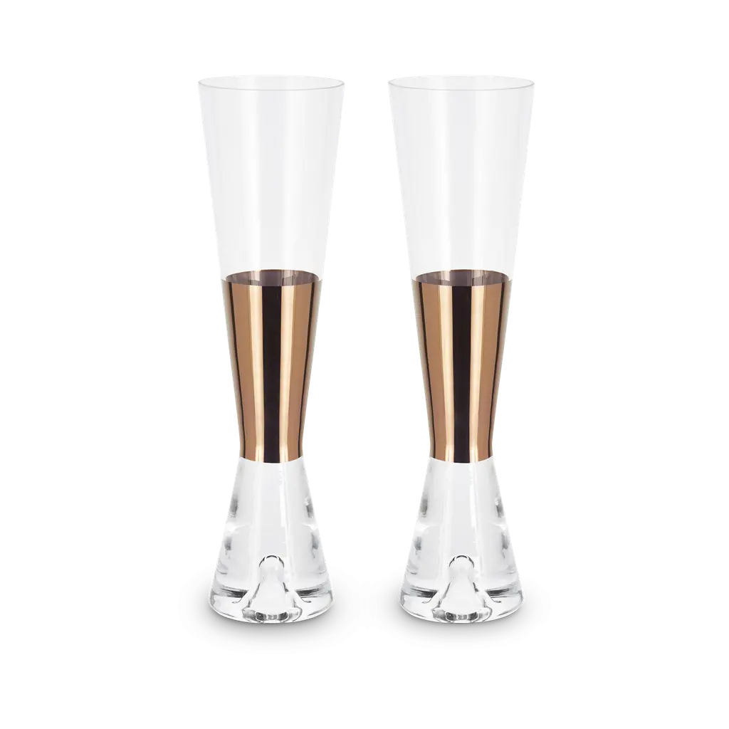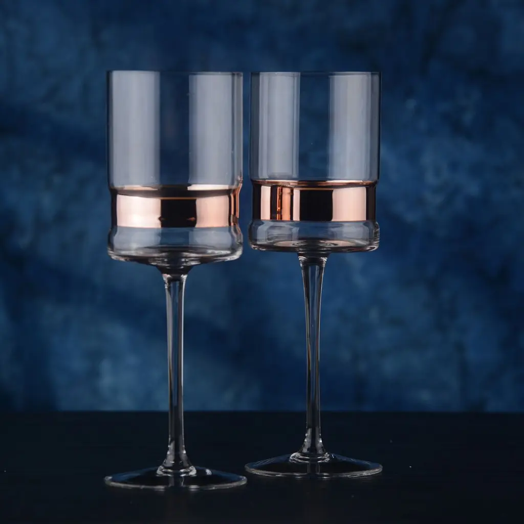 Impress your guests with SoHo wine glasses. The bright metallic band adds a touch of luxury to the contemporary well-rounded glasses. Perfect for any occasion, these glasses come in a gift box with metallic trim.