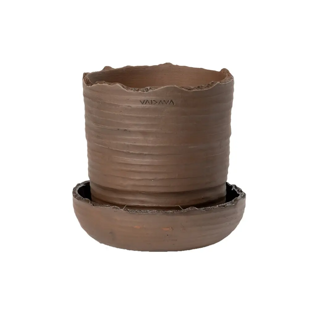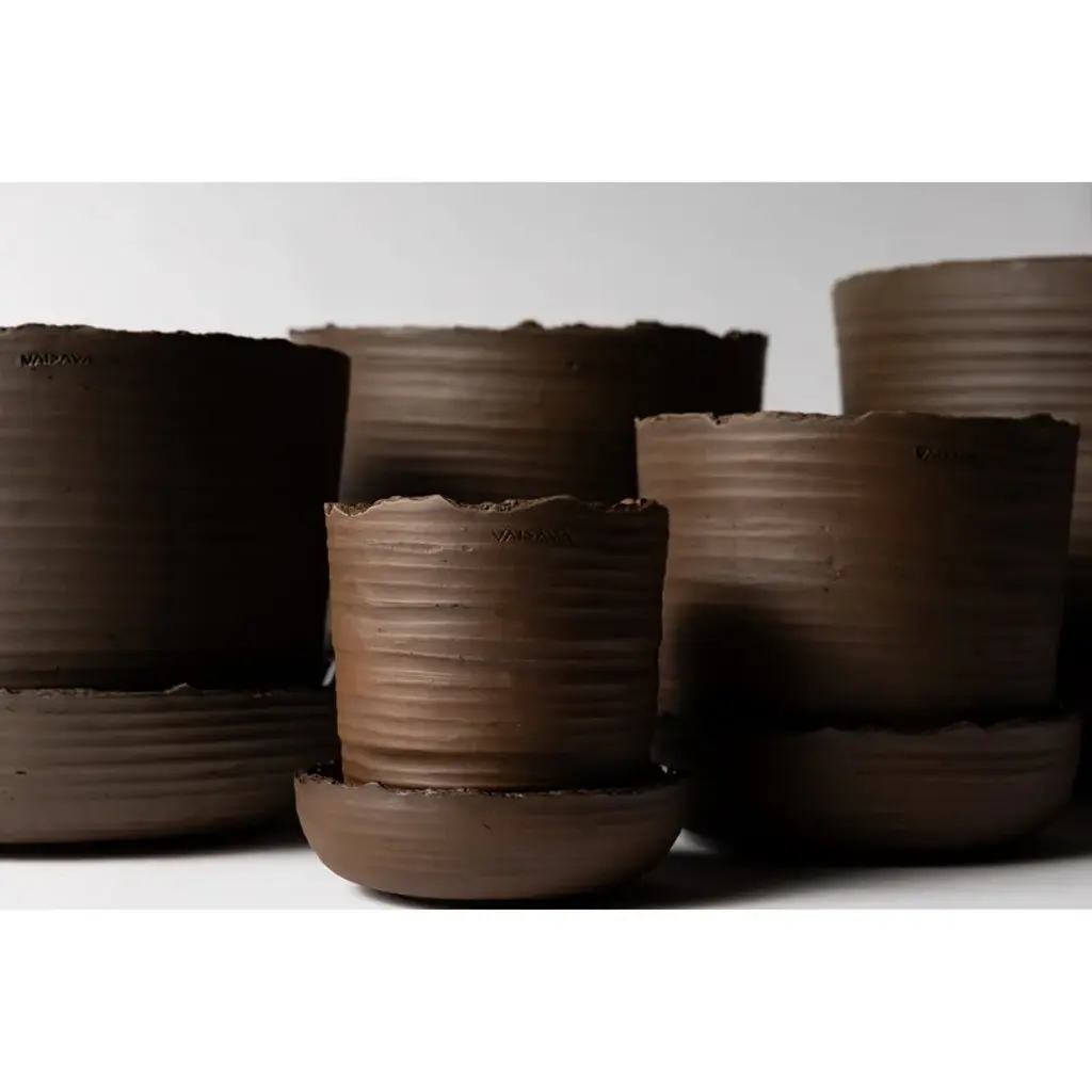 Vaidava's Soil pot charms with its lively, roughly unfinished surface and charmingly uneven edges. The collection's name, 'Soil', is an omen: the dark brown clay pot really does evoke the idea of natural, rich, living soil with all its minerals and organisms. Designed by Arturs Analts, the pots in the Soil collection are handcrafted, so each one is sure to be unique. The series includes several different pots, making it easy to find the right size home for every green plant in your home.