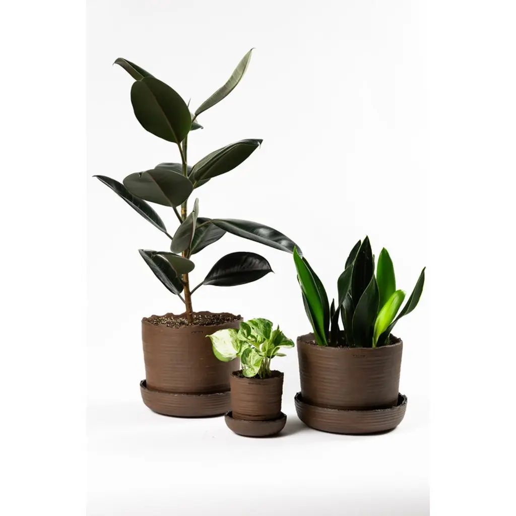 Soil Pot With Saucer, S, Brown