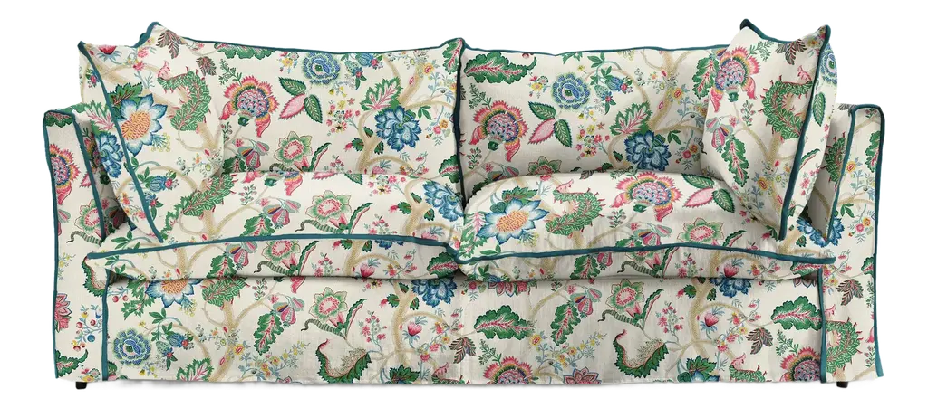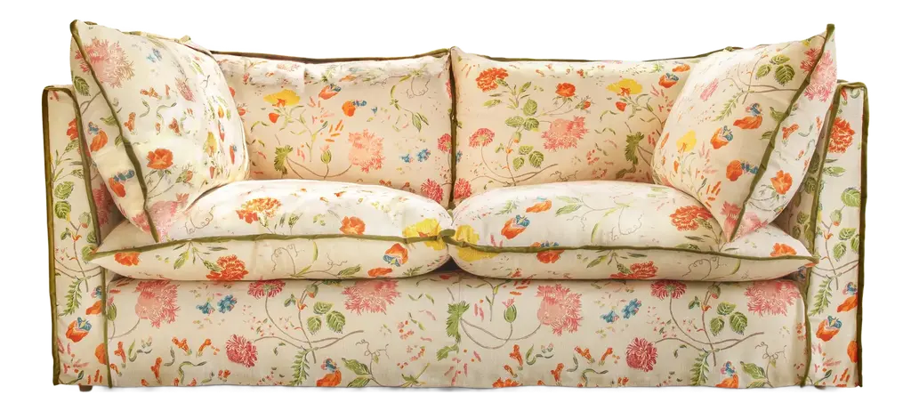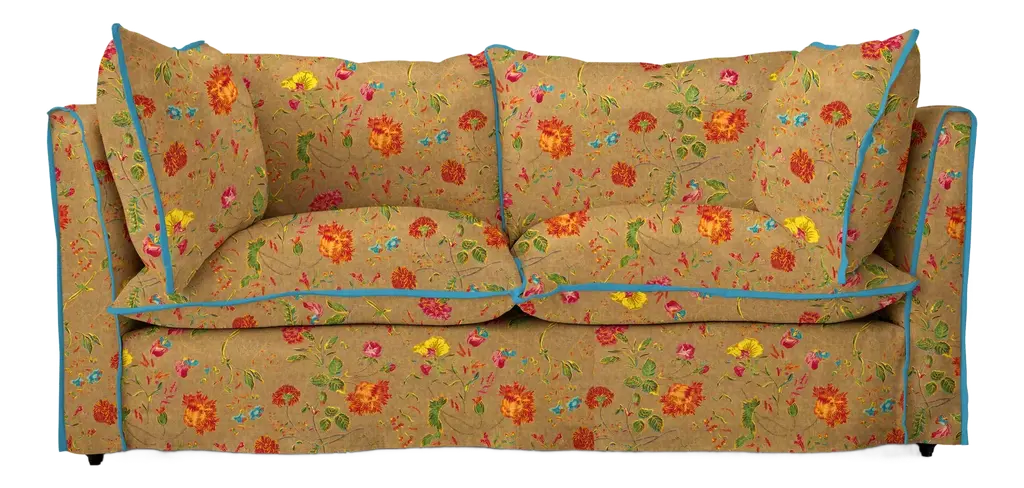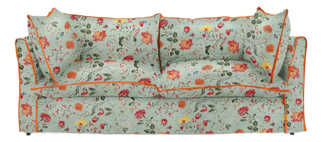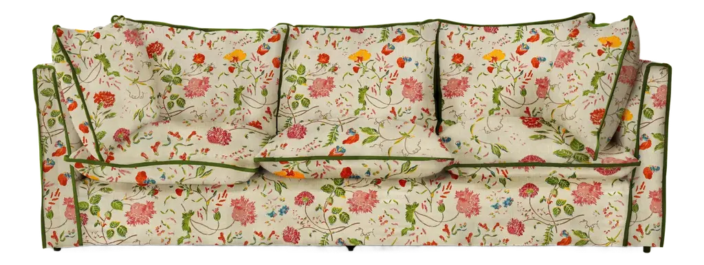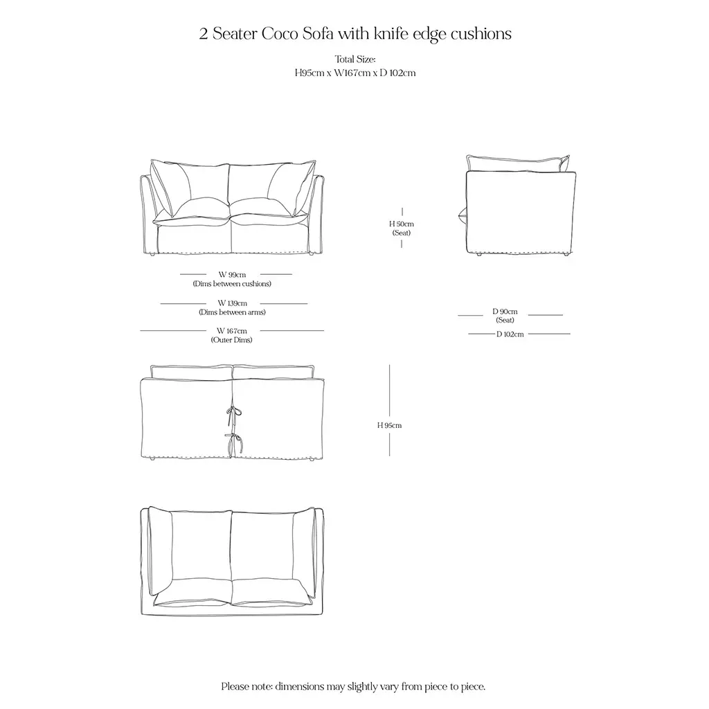 A joyous beautiful sofa made by hand in the US using all natural materials with a large dollop of comfort. Dimensions: Width 167cm (65.74 inches) , Depth 102cm (40.15 inches) , Height 95cm (37.40 inches) - for more information please see illustrations Material - Our sofas are made from natural materials including: Solid Hardwood frame, all natural fibres, individual coil steel springs. Our standard cushions are filled with Feather and Fibre. This filling is very comfortable and has good resilience - so they bounce back well. The will need to be plumped once a week, but not on a daily basis. We can also provide fully customisable cushion fills depending on your requirements. These include all natural down and feather as well as latex fillings. Please read our blog section for more information regarding our cushion fills. Fabric Composition: 100% Linen ‘Tradition with a twist of joy and a very large dollop of comfort…’ Traditionally, all sofas were made using just natural materials. Ours are made traditionally, they are all natural too featuring solid Birch hardwood frames, fully sprung steel seats and made entirely from natural fibres. The result is as you’d imagine, incredibly comfortable and hand made beautifully to last a lifetime. 'Bespoke, by hand and limited production' My sofas are made completely bespoke for you by hand in North Carolina by a family owned and run business. They are highly skilled craftspeople who are very dedicated to producing truly exceptional quality. As a result, there is only ever going to be a limited amount of my sofas available every year. 'Sofas designed for living in' If your sofas are anything like mine, they get a lot of use from family friends and lots of dogs too. For that reason, all my sofas come with loose covers so they can be removed for cleaning. I wanted mine to be really easy to change so I have added a beautiful bow detail at the back of them that makes it super easy to change your covers.