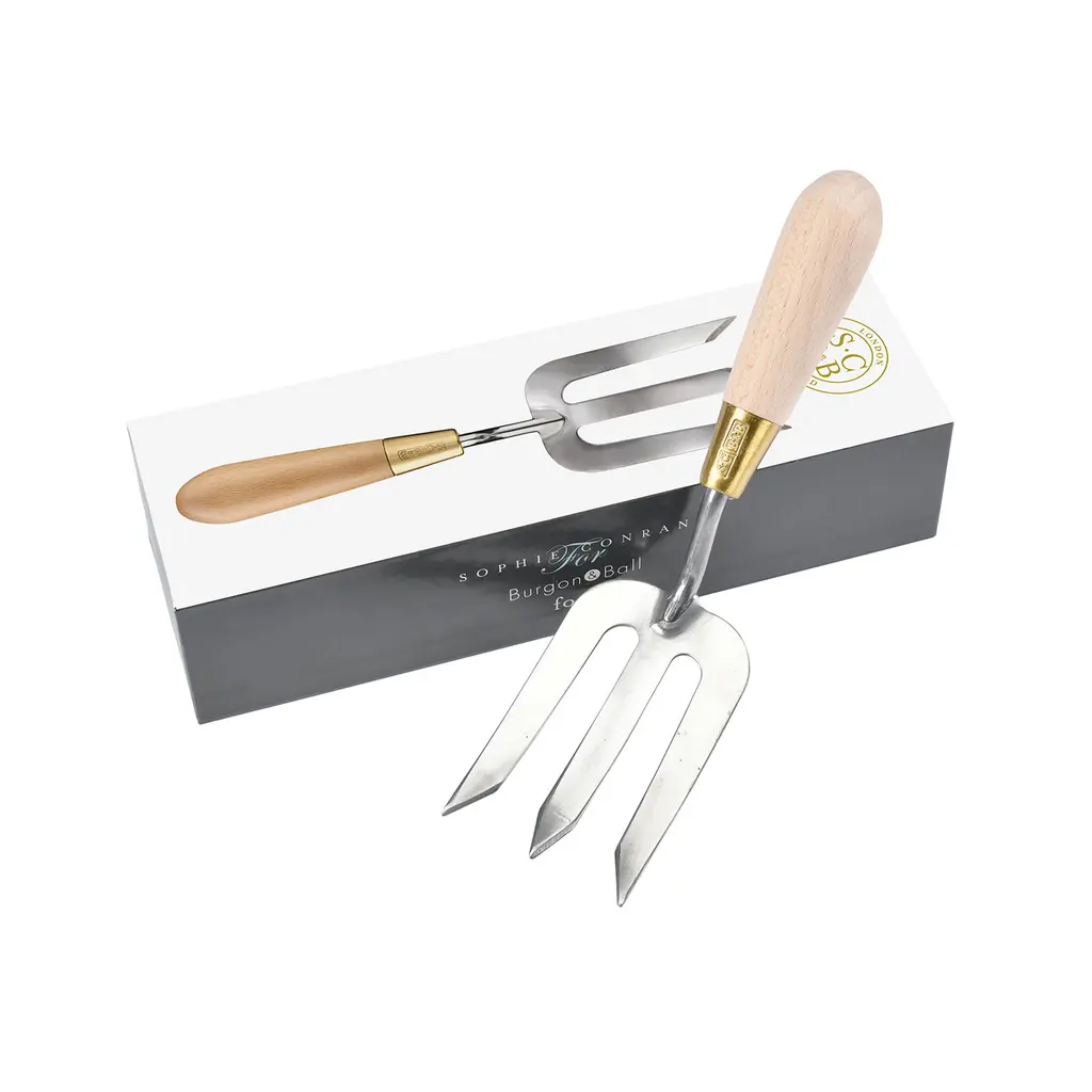 Tidying up your garden is easy when you have the right tools. With the Sophie Conran Fork, you can also bring an elegant, modern country house style into your outdoor space. Part of the Burgon & Ball Sophie Conran Collection, this fork is as delightful to use as it is to admire. It features a curved beech wood handle that fits comfortably into your hand and a stainless steel head with a mirror polished finish. Rust-resistant, the stainless steel head will look fantastic over years of use. Other features include a waxed finish on the handle and a brass ferrule etched with the collection’s logo. The Sophie Conran Fork comes with a gift-ready box and a 10-year guarantee against manufacturing defects.