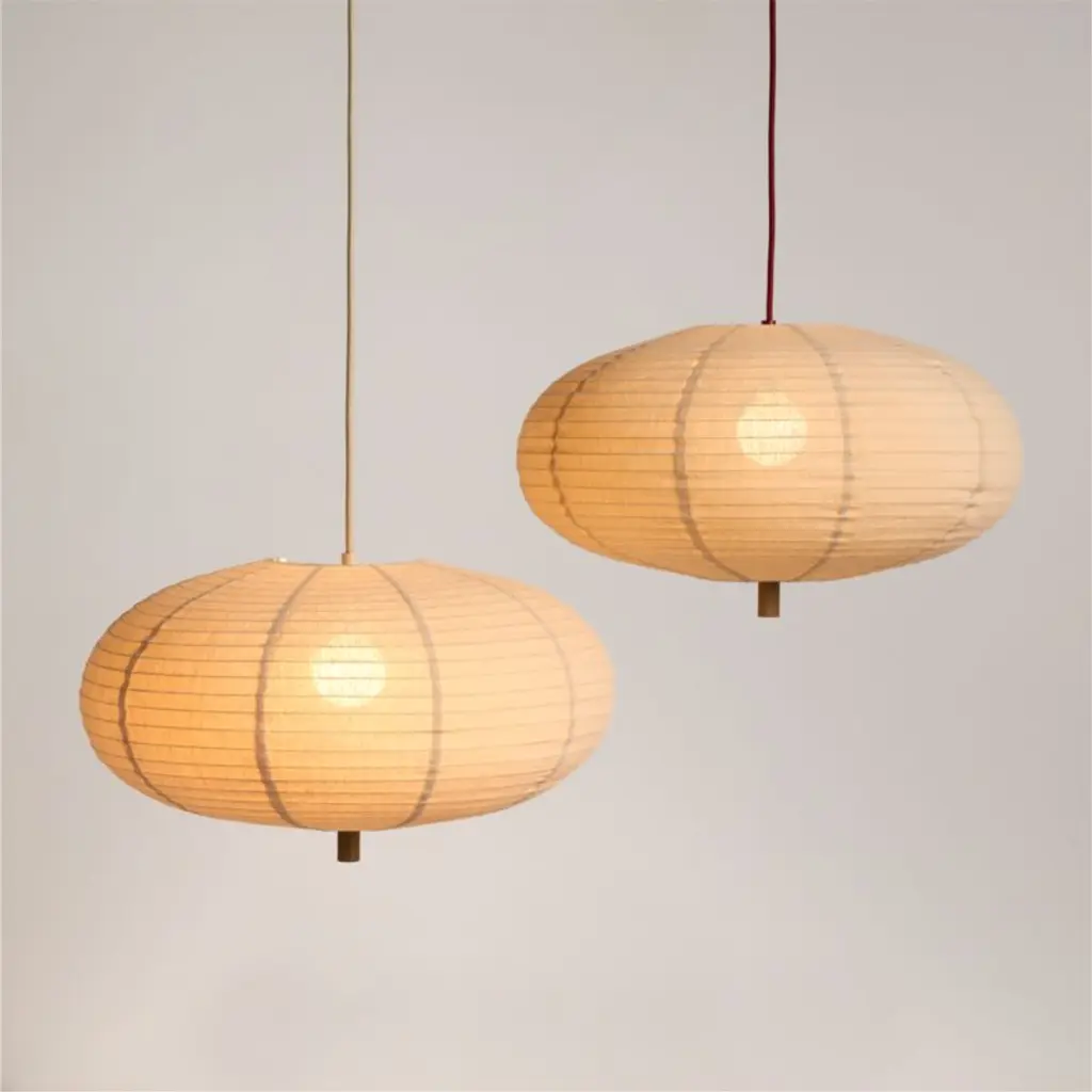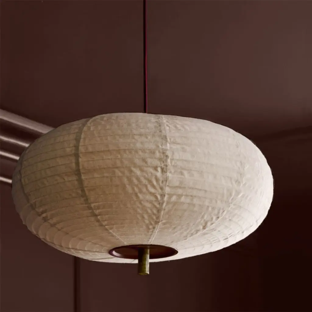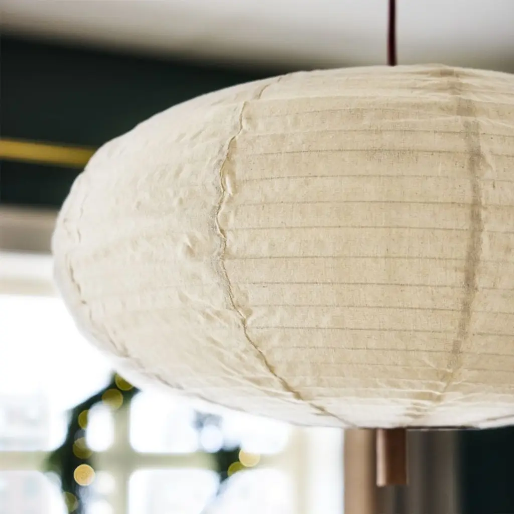Inspired by classic Japanese lanterns, our Soren pendant light's oval linen shade gives off a cozy glow. Its oak finial is a cool contrast to the red powdercoated metal ceiling plate. Ideal for bedrooms, play corners or hangout zones, it's a simple statement piece that feels both calm and collected.