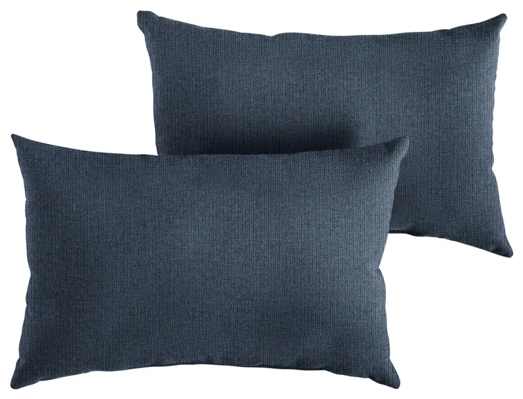 Make the most of your porch or patio by dressing it up with this adorable set of two lumbar pillows! Featuring a gorgeous multi textured fabric in a rich, blue hue, this pillow set will help style out your space and make you enjoy the outdoors so much more! Crafted out of a performance material right here in North America, these pillows are built to withstand all of the sun, stains and weather that comes your way. • Ideal for casual indoor and outdoor use• Includes two (2) lumbar pillows• • Available in 12 x 18 in, 12 x 24 in, 13 x 20 in, 14 x 24 in, and 16 x 26 in sizes• Pillows only. Furniture not included.• • Made in North America•