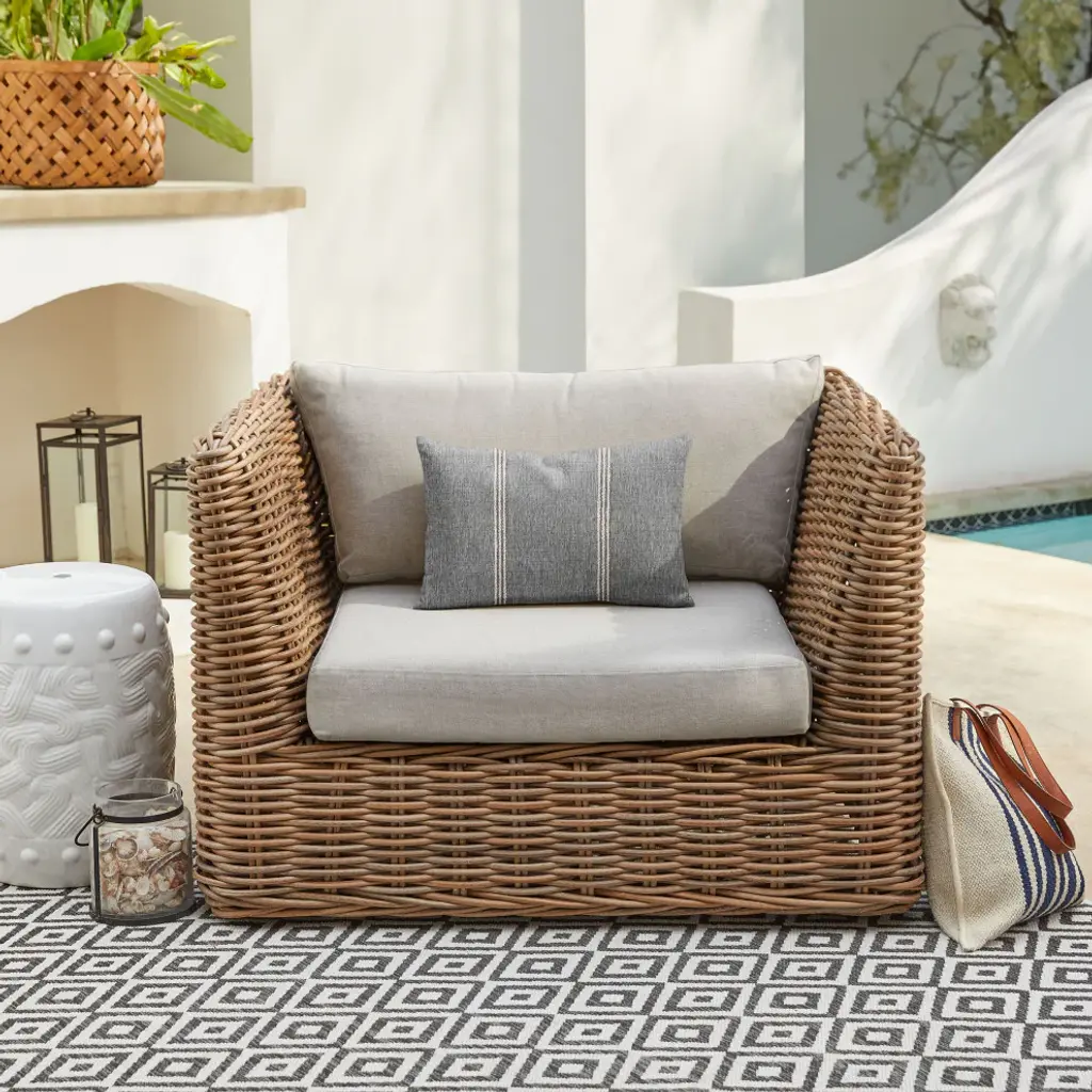 Take advantage of your porch or patio and start sprucing it up with this adorable pillow! Featuring a gorgeous fabric, this pillow will brighten your space and help you enjoy the outdoors so much more! Crafted out of a performance material right here in North America, this pillow is built to withstand all of the sun, stains and weather that comes your way. Sunbrella is founded on the belief that fabrics should be both beautiful and functional. We began in the 1960s with the challenge of creating an awning canvas with a substantially longer lifespan than cotton. Sunbrella has become widely adopted for shade structures, marine canvas and upholstery fabric for both outdoor and indoor applications.Our textiles are made with close attention to design detail, and engineered with robust performance characteristics that provide resistance to fading and degradation from sunlight and chemical exposure. The fabric is tactile yet durable, has industry-leading environmental characteristics, is easy to care for and offers long life wherever it''s used.No Sunbrella manufacturing facility in the world sends waste to landfills. A result of our focus on efficiency, this monumental achievement allows Sunbrella to lead by example, putting sustainability into practice every day across the globe. Our unique coloring process not only makes Sunbrella fabrics fade-resistant, it also conserves more water than conventional dyeing processes. At Sunbrella we believe it''s important to preserve the environment around our facilities. We work to conserve the plant and animal life that is native to the area and encourage our employees to plant gardens designed to provide fresh food and nourish local wildlife.We stand behind our fabrics with a guarantee that''s the best in the industry: a 5-year limited warranty for upholstery. This warranty protects the original purchaser of Sunbrella fabric. This warranty protects against Sunbrella fabric becoming unserviceable due to color or strength loss from normal usage and exposure conditions, including sunlight, mildew and atmospheric chemicals.• Ideal for casual indoor and outdoor use• Includes one (1) lumbar pillow• • Available in a variety of sizes and colors to ensure that you find the perfect match for your furniture• Pillow only. Furniture not included.• • Made in North America•