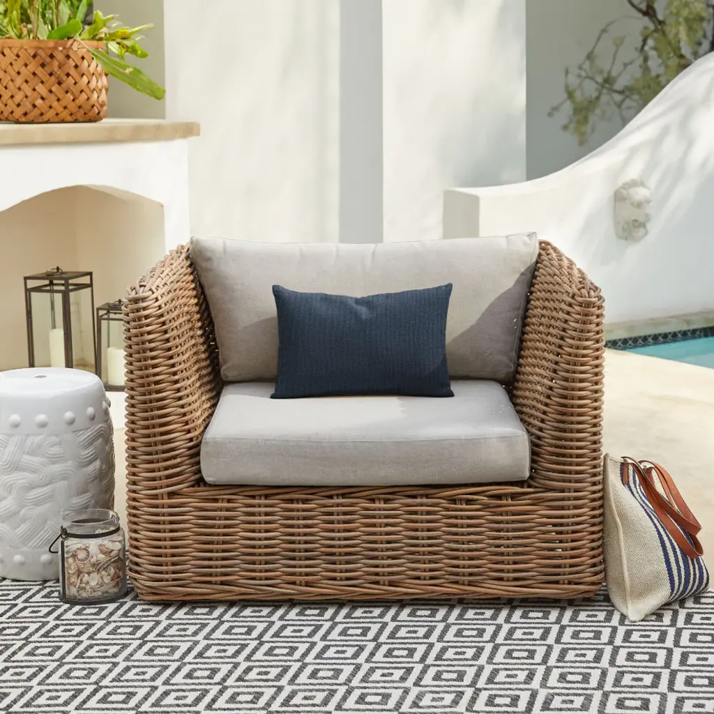 Take advantage of your porch or patio and start sprucing it up with this adorable pillow! Featuring a gorgeous fabric, this pillow will brighten your space and help you enjoy the outdoors so much more! Crafted out of a performance material right here in North America, this pillow is built to withstand all of the sun, stains and weather that comes your way. Sunbrella is founded on the belief that fabrics should be both beautiful and functional. We began in the 1960s with the challenge of creating an awning canvas with a substantially longer lifespan than cotton. Sunbrella has become widely adopted for shade structures, marine canvas and upholstery fabric for both outdoor and indoor applications.Our textiles are made with close attention to design detail, and engineered with robust performance characteristics that provide resistance to fading and degradation from sunlight and chemical exposure. The fabric is tactile yet durable, has industry-leading environmental characteristics, is easy to care for and offers long life wherever it''s used.No Sunbrella manufacturing facility in the world sends waste to landfills. A result of our focus on efficiency, this monumental achievement allows Sunbrella to lead by example, putting sustainability into practice every day across the globe. Our unique coloring process not only makes Sunbrella fabrics fade-resistant, it also conserves more water than conventional dyeing processes. At Sunbrella we believe it''s important to preserve the environment around our facilities. We work to conserve the plant and animal life that is native to the area and encourage our employees to plant gardens designed to provide fresh food and nourish local wildlife.We stand behind our fabrics with a guarantee that''s the best in the industry: a 5-year limited warranty for upholstery. This warranty protects the original purchaser of Sunbrella fabric. This warranty protects against Sunbrella fabric becoming unserviceable due to color or strength loss from normal usage and exposure conditions, including sunlight, mildew and atmospheric chemicals.• Ideal for casual indoor and outdoor use• Includes one (1) lumbar pillow• • Available in a variety of sizes and colors to ensure that you find the perfect match for your furniture• Pillow only. Furniture not included.• • Made in North America•