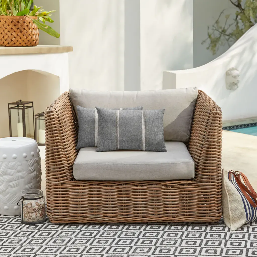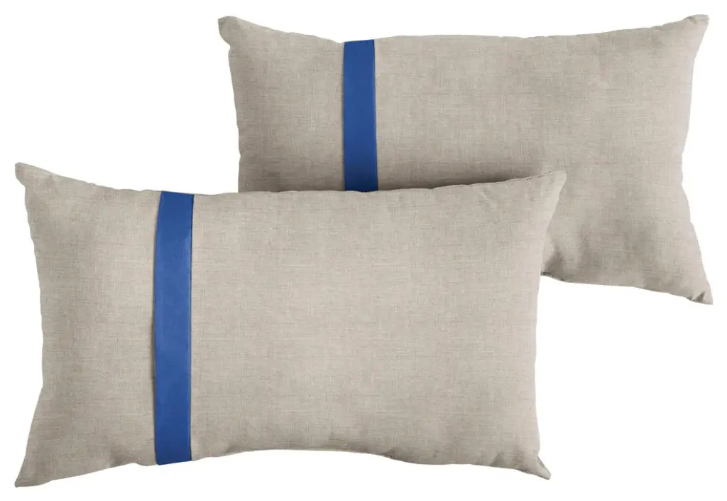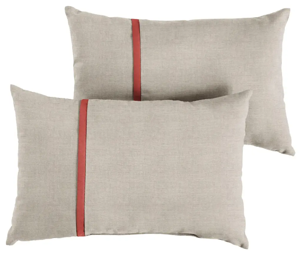 Make the most of your porch or patio by dressing it up with this adorable set of two pillows! Featuring a gorgeous fabric, this pillow set will help style out your space and make you enjoy the outdoors so much more! Crafted out of a performance material right here in North America, these pillows are built to withstand all of the sun, stains and weather that comes your way. Sunbrella is founded on the belief that fabrics should be both beautiful and functional. We began in the 1960s with the challenge of creating an awning canvas with a substantially longer lifespan than cotton. Sunbrella has become widely adopted for shade structures, marine canvas and upholstery fabric for both outdoor and indoor applications.Our textiles are made with close attention to design detail, and engineered with robust performance characteristics that provide resistance to fading and degradation from sunlight and chemical exposure. The fabric is tactile yet durable, has industry-leading environmental characteristics, is easy to care for and offers long life wherever it''s used.No Sunbrella manufacturing facility in the world sends waste to landfills. A result of our focus on efficiency, this monumental achievement allows Sunbrella to lead by example, putting sustainability into practice every day across the globe. Our unique coloring process not only makes Sunbrella fabrics fade-resistant, it also conserves more water than conventional dyeing processes. At Sunbrella we believe it''s important to preserve the environment around our facilities. We work to conserve the plant and animal life that is native to the area and encourage our employees to plant gardens designed to provide fresh food and nourish local wildlife.We stand behind our fabrics with a guarantee that''s the best in the industry: a 5-year limited warranty for upholstery. This warranty protects the original purchaser of Sunbrella fabric. This warranty protects against Sunbrella fabric becoming unserviceable due to color or strength loss from normal usage and exposure conditions, including sunlight, mildew and atmospheric chemicals.• Ideal for casual indoor and outdoor use• Includes two (2) lumbar pillows• • Available in a variety of sizes and colors to ensure that you find the perfect match for your furniture• Pillows only. Furniture not included.• • Made in North America•