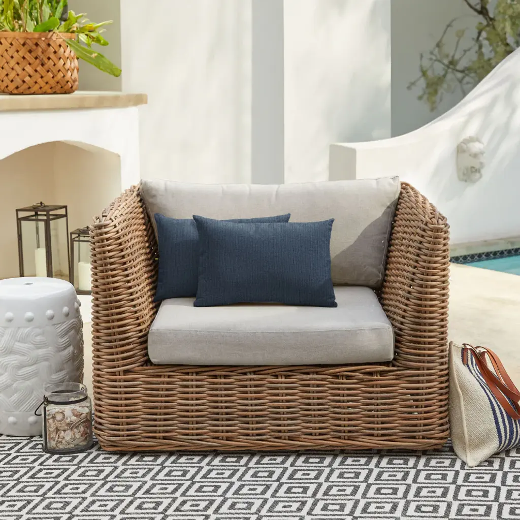 Make the most of your porch or patio by dressing it up with this adorable set of two pillows! Featuring a gorgeous fabric, this pillow set will help style out your space and make you enjoy the outdoors so much more! Crafted out of a performance material right here in North America, these pillows are built to withstand all of the sun, stains and weather that comes your way. Sunbrella is founded on the belief that fabrics should be both beautiful and functional. We began in the 1960s with the challenge of creating an awning canvas with a substantially longer lifespan than cotton. Sunbrella has become widely adopted for shade structures, marine canvas and upholstery fabric for both outdoor and indoor applications.Our textiles are made with close attention to design detail, and engineered with robust performance characteristics that provide resistance to fading and degradation from sunlight and chemical exposure. The fabric is tactile yet durable, has industry-leading environmental characteristics, is easy to care for and offers long life wherever it''s used.No Sunbrella manufacturing facility in the world sends waste to landfills. A result of our focus on efficiency, this monumental achievement allows Sunbrella to lead by example, putting sustainability into practice every day across the globe. Our unique coloring process not only makes Sunbrella fabrics fade-resistant, it also conserves more water than conventional dyeing processes. At Sunbrella we believe it''s important to preserve the environment around our facilities. We work to conserve the plant and animal life that is native to the area and encourage our employees to plant gardens designed to provide fresh food and nourish local wildlife.We stand behind our fabrics with a guarantee that''s the best in the industry: a 5-year limited warranty for upholstery. This warranty protects the original purchaser of Sunbrella fabric. This warranty protects against Sunbrella fabric becoming unserviceable due to color or strength loss from normal usage and exposure conditions, including sunlight, mildew and atmospheric chemicals.• Ideal for casual indoor and outdoor use• Includes two (2) lumbar pillows• • Available in a variety of sizes and colors to ensure that you find the perfect match for your furniture• Pillows only. Furniture not included.• • Made in North America•