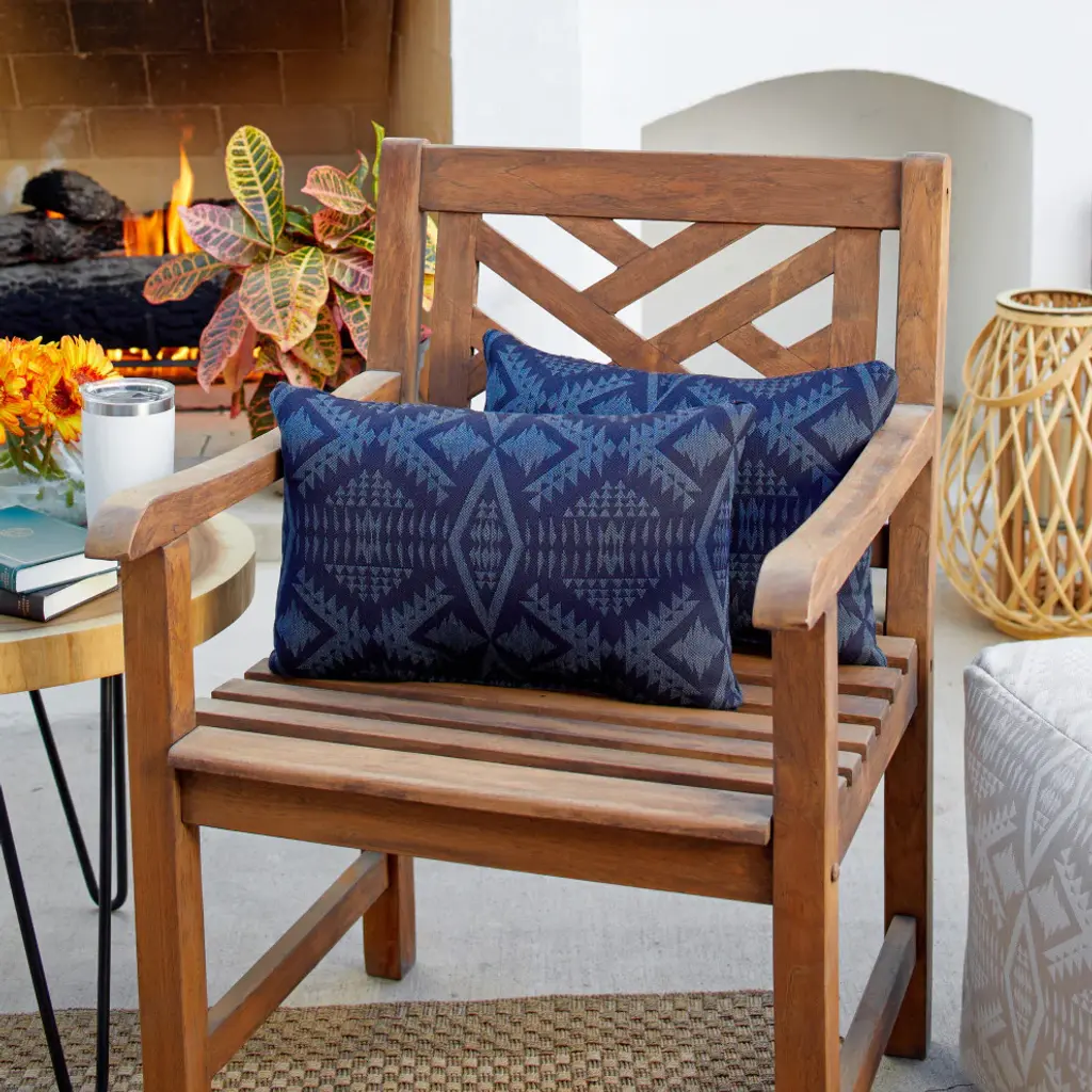 Make the most of your porch or patio by dressing it up with this adorable set of two lumbar pillows! Featuring a gorgeous geometric fabric in a rich, blue hue, this pillow set will help style out your space and make you enjoy the outdoors so much more! Crafted out of a performance material right here in North America, these pillows are built to withstand all of the sun, stains and weather that comes your way. Sunbrella is founded on the belief that fabrics should be both beautiful and functional. We began in the 1960s with the challenge of creating an awning canvas with a substantially longer lifespan than cotton. Sunbrella has become widely adopted for shade structures, marine canvas and upholstery fabric for both outdoor and indoor applications.Our textiles are made with close attention to design detail, and engineered with robust performance characteristics that provide resistance to fading and degradation from sunlight and chemical exposure. The fabric is tactile yet durable, has industry-leading environmental characteristics, is easy to care for and offers long life wherever it''s used.No Sunbrella manufacturing facility in the world sends waste to landfills. A result of our focus on efficiency, this monumental achievement allows Sunbrella to lead by example, putting sustainability into practice every day across the globe. Our unique coloring process not only makes Sunbrella fabrics fade-resistant, it also conserves more water than conventional dyeing processes. At Sunbrella we believe it''s important to preserve the environment around our facilities. We work to conserve the plant and animal life that is native to the area and encourage our employees to plant gardens designed to provide fresh food and nourish local wildlife.We stand behind our fabrics with a guarantee that''s the best in the industry: a 5-year limited warranty for upholstery. This warranty protects the original purchaser of Sunbrella fabric. This warranty protects against Sunbrella fabric becoming unserviceable due to color or strength loss from normal usage and exposure conditions, including sunlight, mildew and atmospheric chemicals.• Ideal for casual indoor and outdoor use• Includes two (2) lumbar pillows• • Available in a variety of sizes and colors to ensure that you find the perfect match for your furniture• Pillows only. Furniture not included.• • Made in North America•